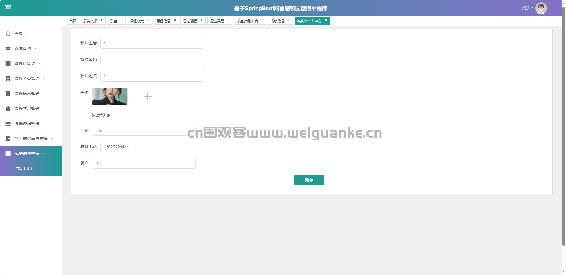 个人中心:查看与修改教师基础资料。
