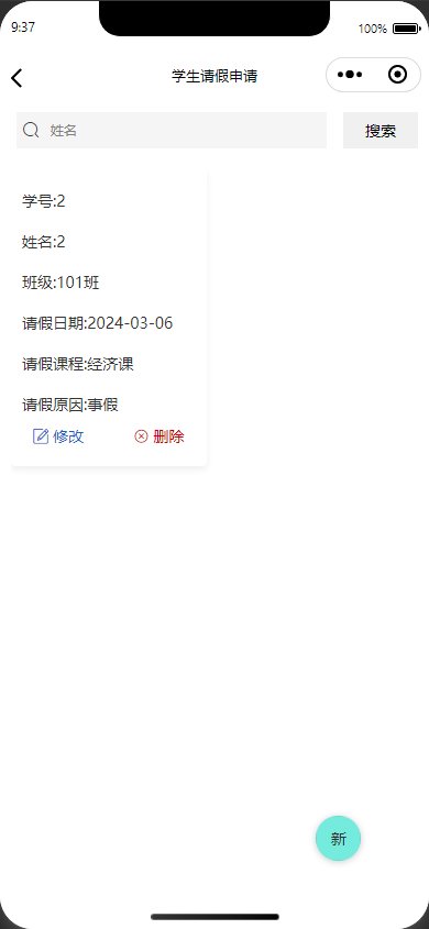 学生请假申请:新增、查看、删除请假记录。