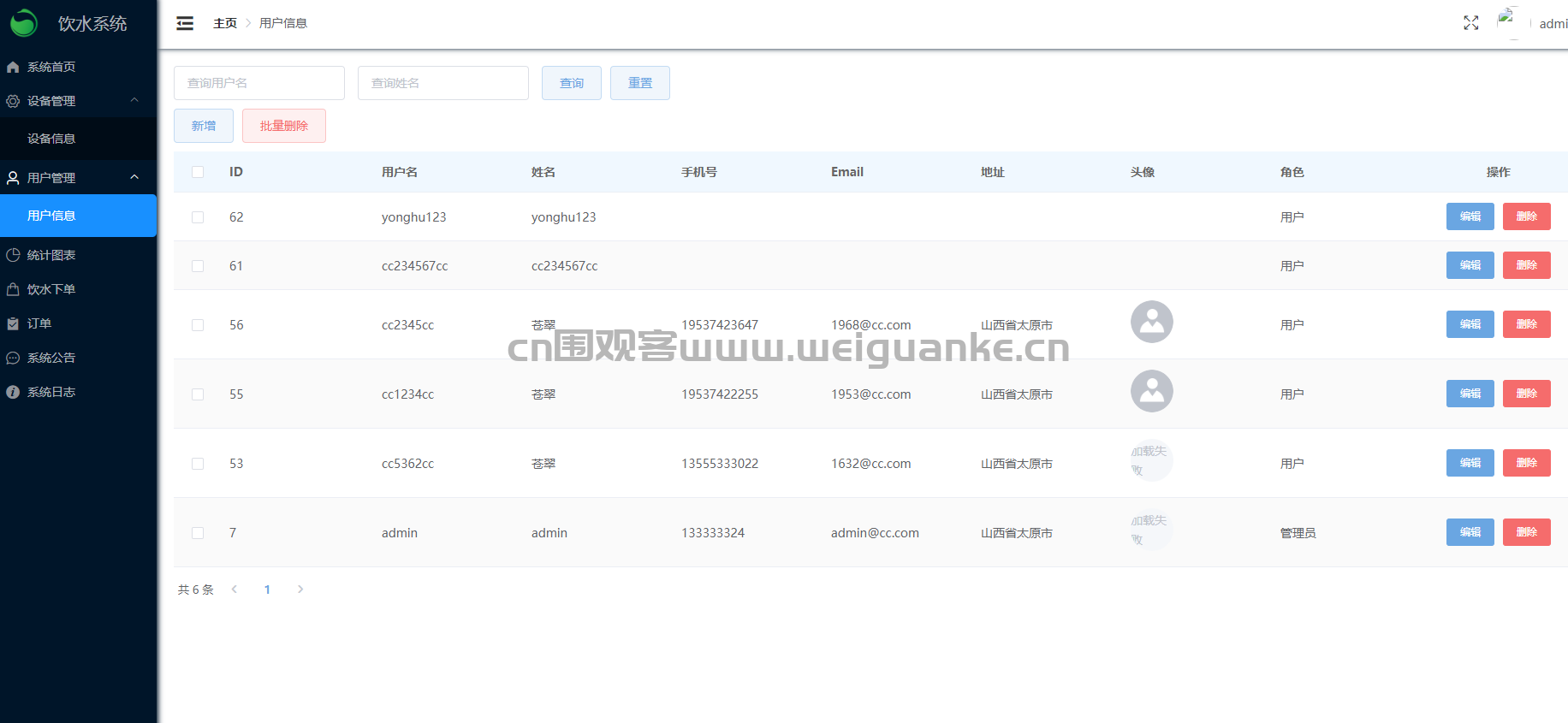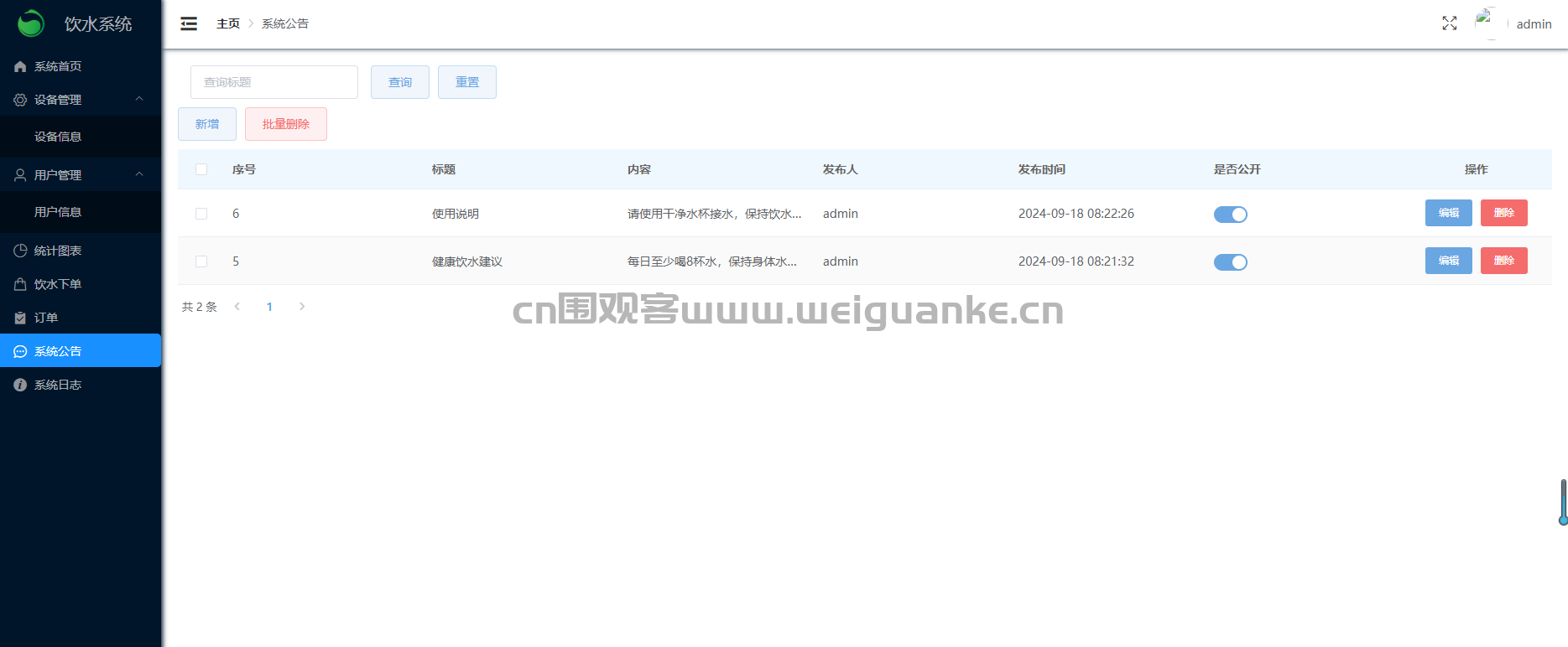 – 管理系统中的饮水设备,包括设备的添加、删除、修改和状态监控。