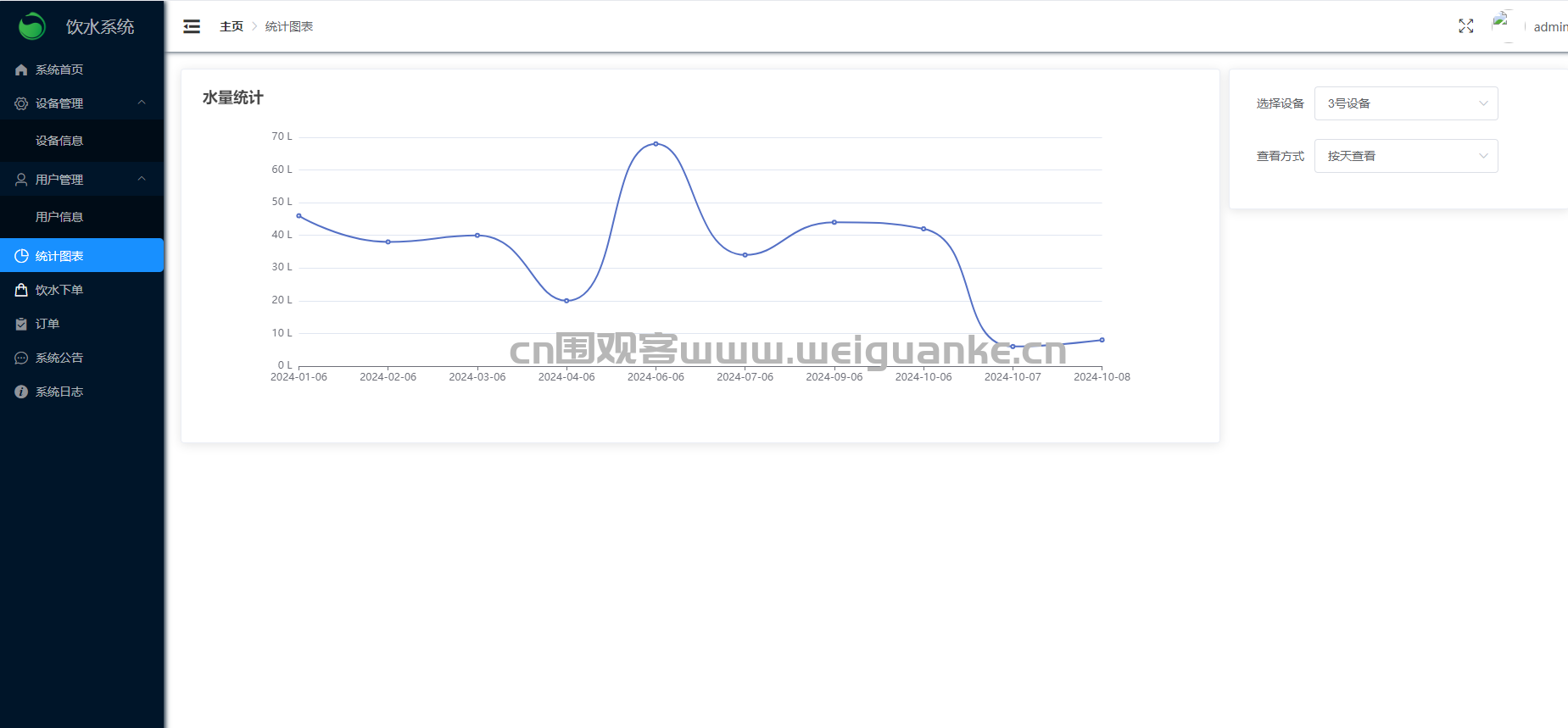 – 提供系统的统计数据和图表,帮助管理员分析用户行为、设备使用情况和订单趋势。