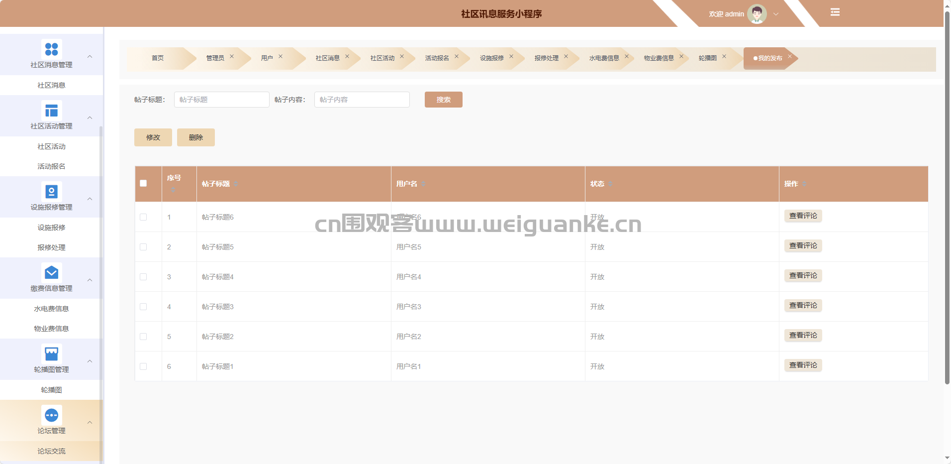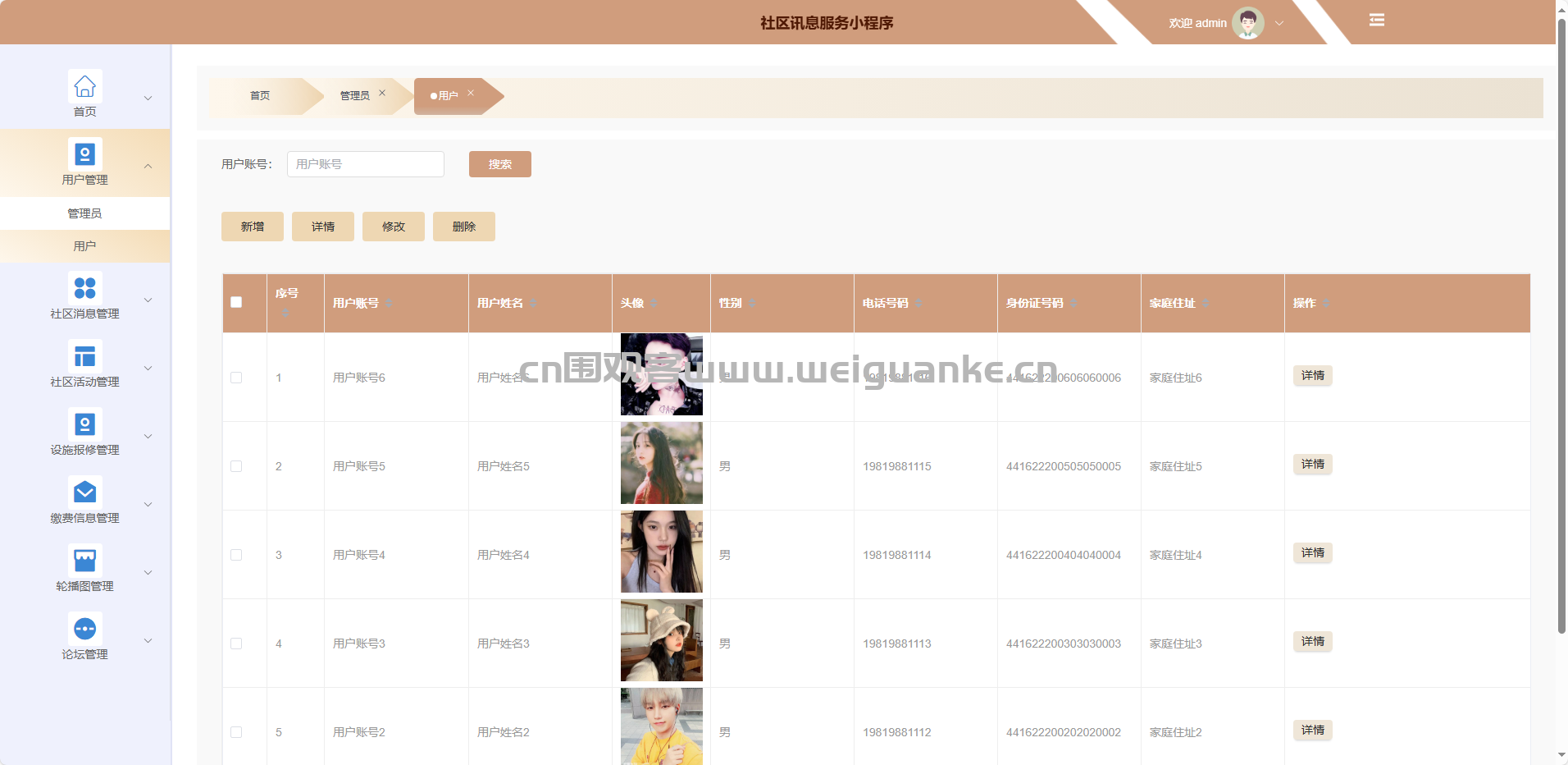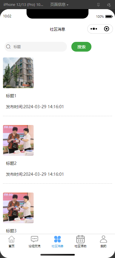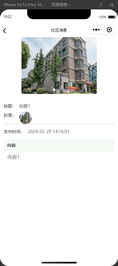 项目描述 基于springboot + vue +微信小程序的社区讯息服务小程序