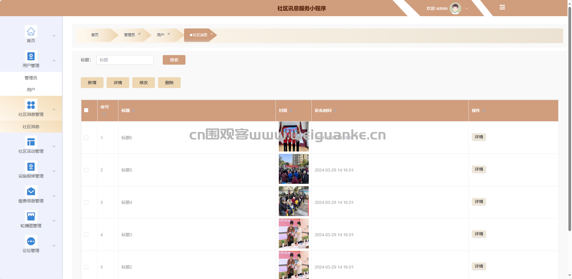 本项目基于SpringBoot、Vue与微信小程序技术栈,构建社区讯息服务小程序,实现居民便捷获取社区动态、参与活动、报修设施及缴费查询,管理员高效管理用户信息、消息发布、活动组织、报修处理与费用信息,提升社区服务智能化与信息化水平。