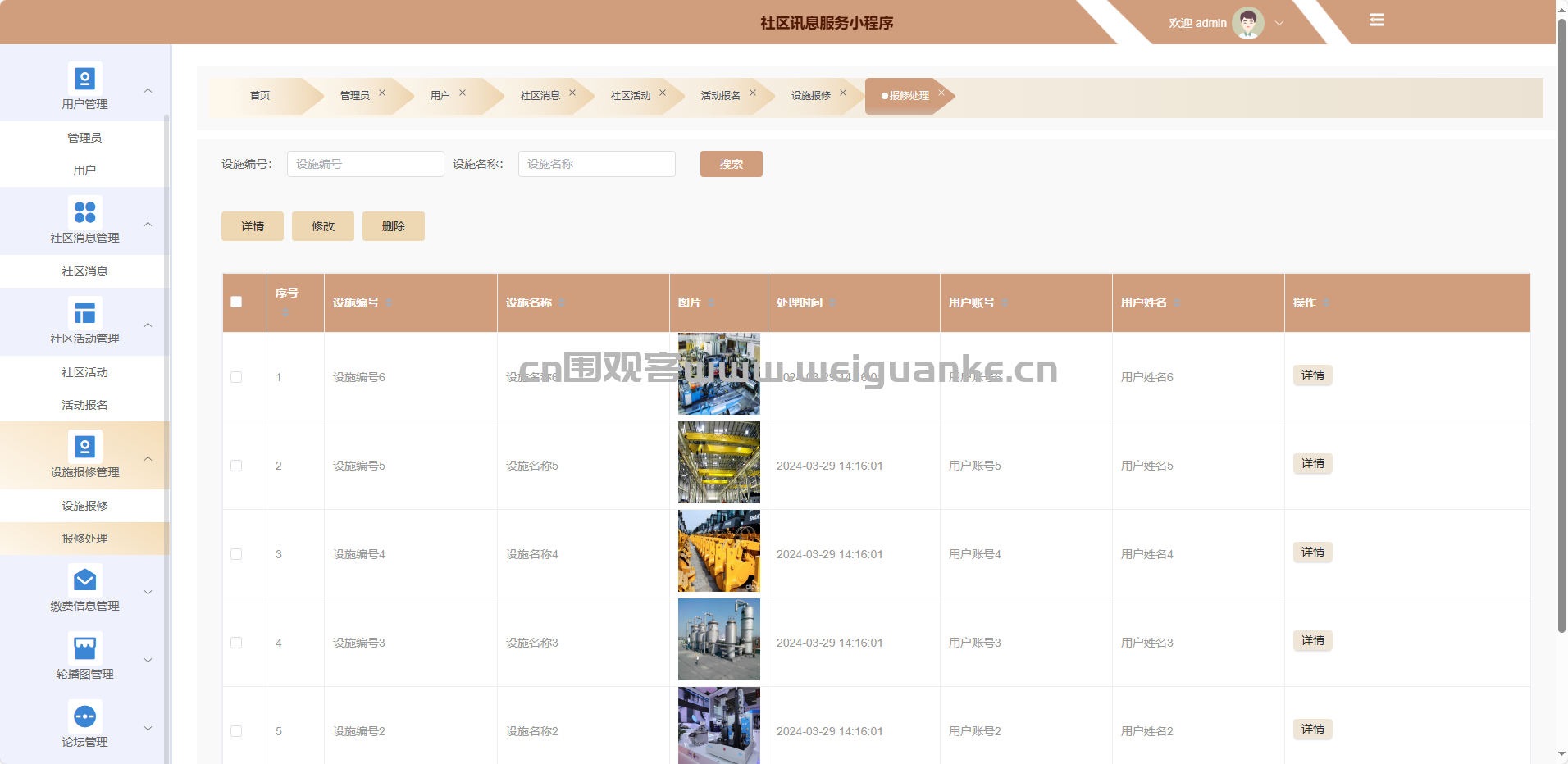 设施报修管理:跟踪报修工单状态直至处理完毕。