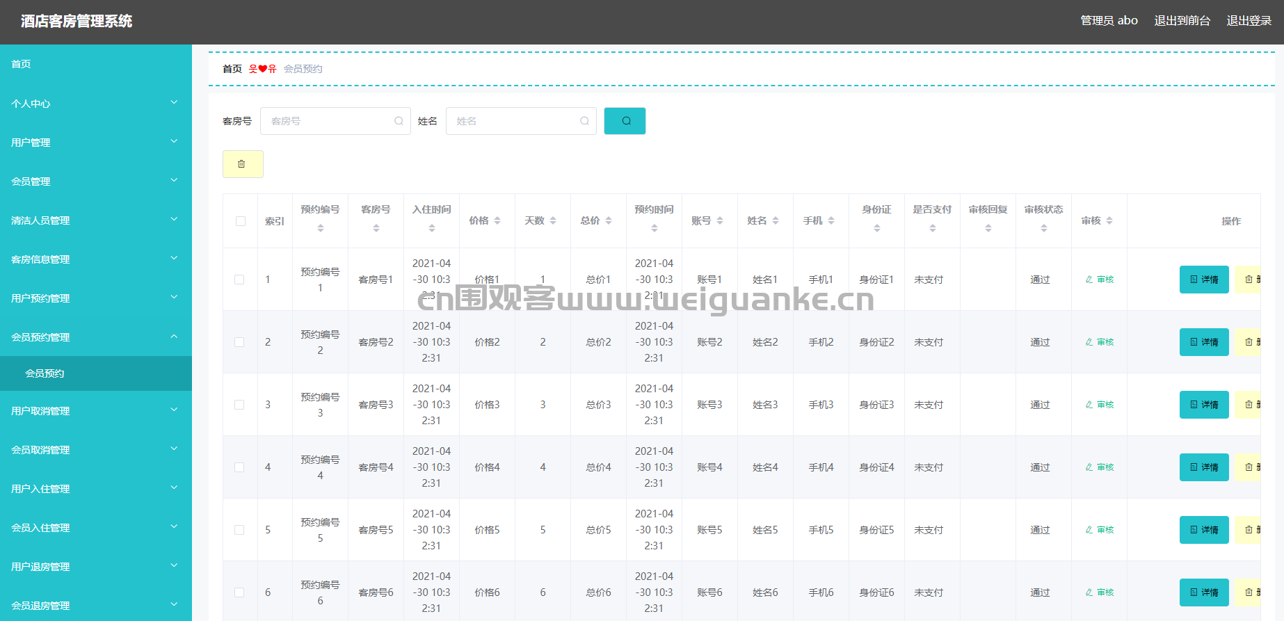 – 会员预约管理:会员可以查看自己已预约的客房信息,包括预约时间、房间类型、入住日期等,还可以进行新的客房预约,系统会根据会员政策提供优先预订等特权。