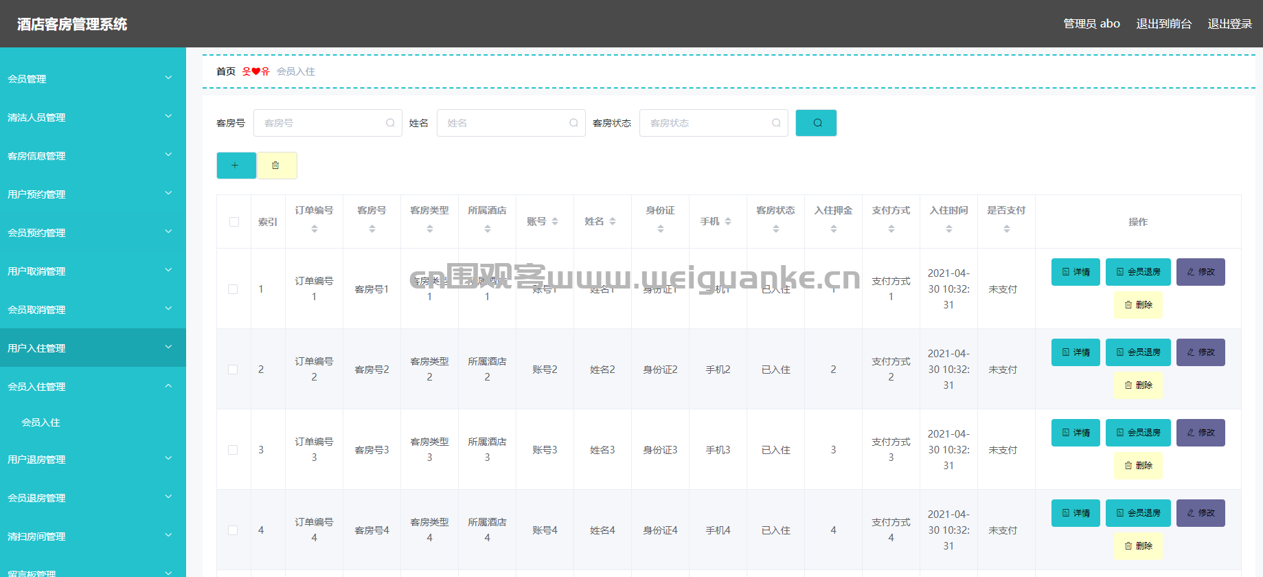 – 会员入住管理:会员办理入住时,系统会根据会员级别提供相应的特权,如优先入住、房间升级等,会员可以查看入住信息和享受的会员权益。