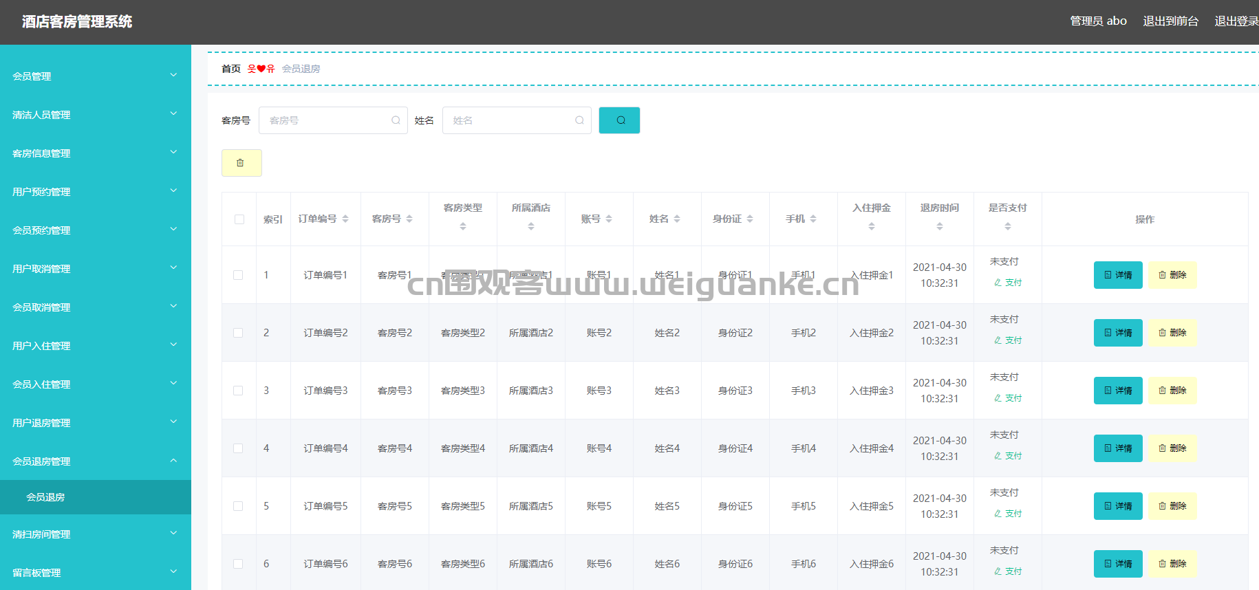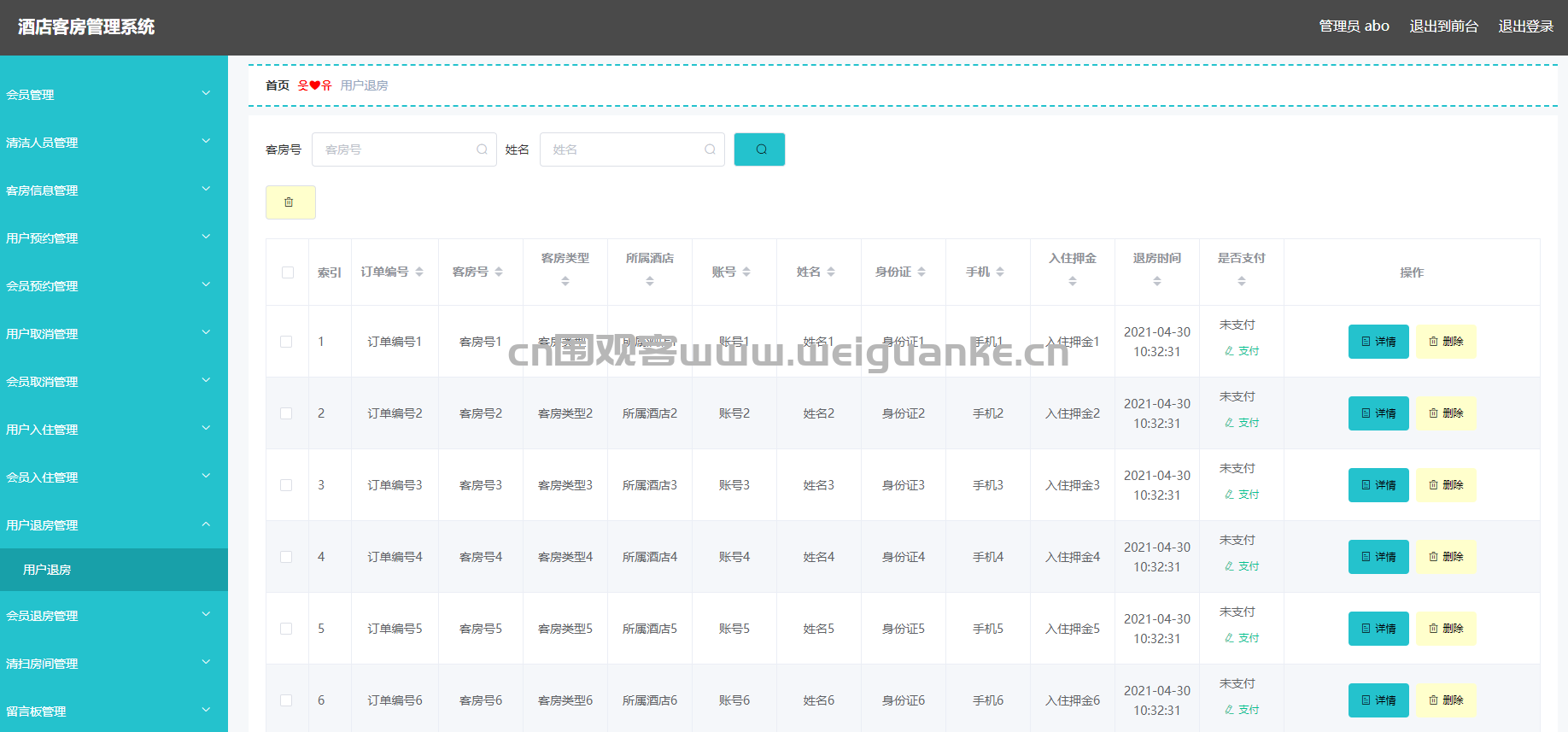 – 会员退房管理:与用户退房管理类似,清洁人员需要关注会员退房后的房间清洁工作,按照清洁标准和流程进行操作,同时记录清洁情况和反馈清洁进度。