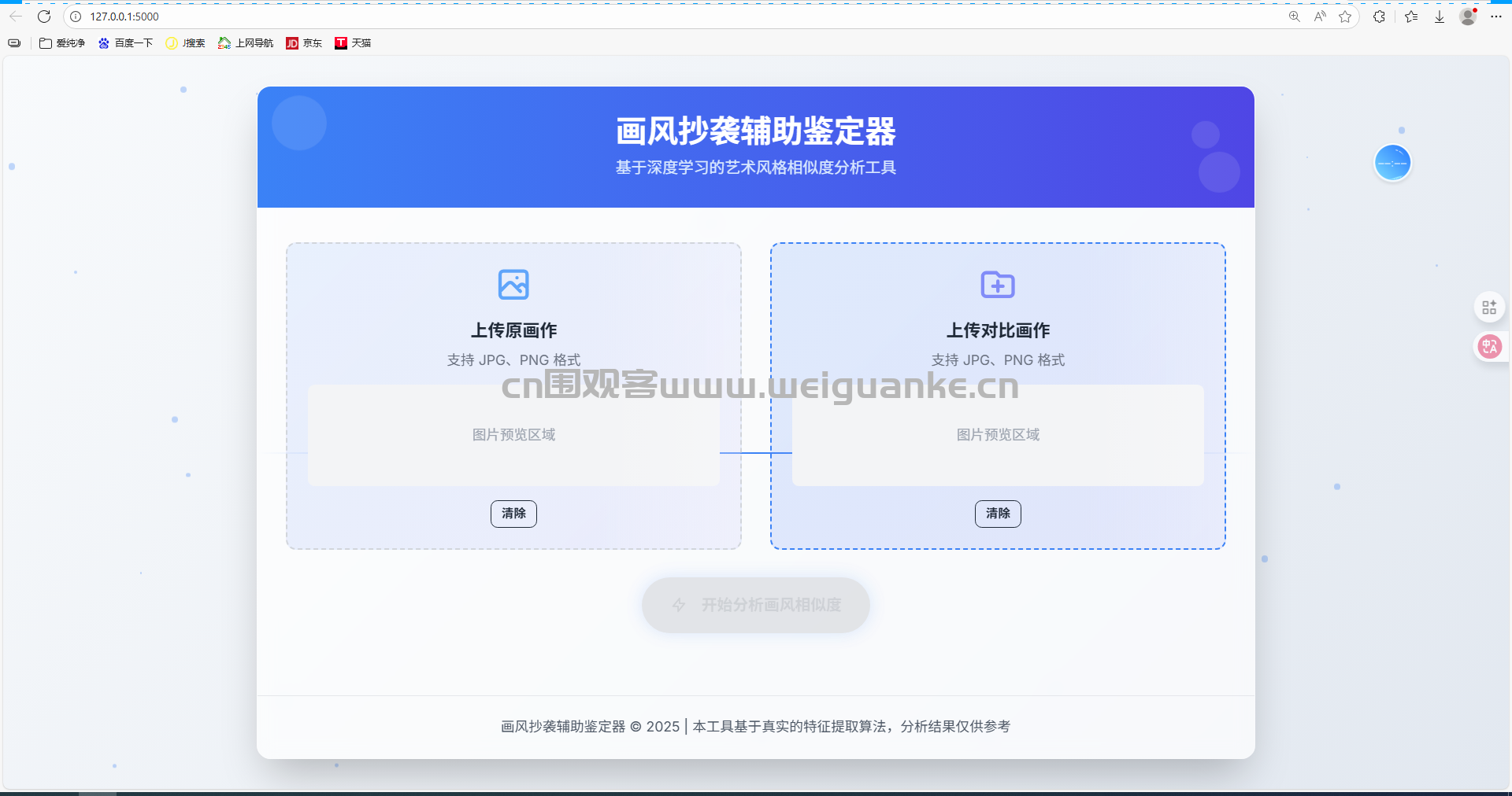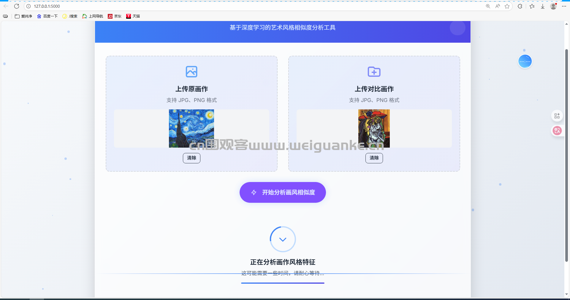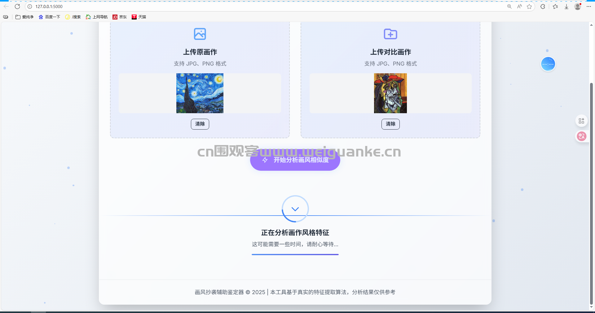zhe, zhuo python 9小时前 基于画风特征解构的画风抄袭辅助鉴定器 项目描述 基于画风特征解构的画风抄袭辅助鉴定器 项目功能:上传图片进行画风相似度评分以及可视化 运行环境 开发工具:PyCharm 运行环境:python3.8 此配置为本人调试所用,仅供参考 项目技术: 后端:flask 相似度计算算法 纹理特征提取 构图特征提取 以上系统源码经过技术整理与调试,确保能正常运行
