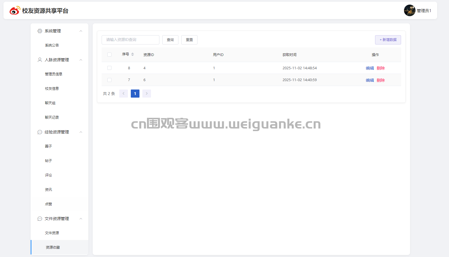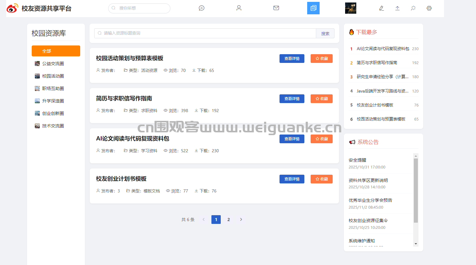 – 功能描述:管理员可以查看和管理用户收藏的资源,了解用户的资源需求和偏好。