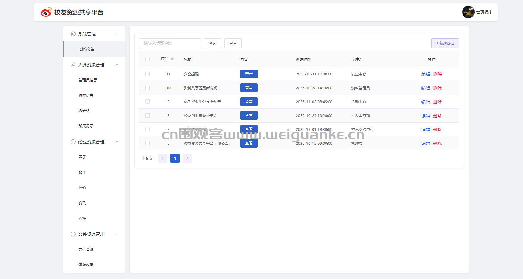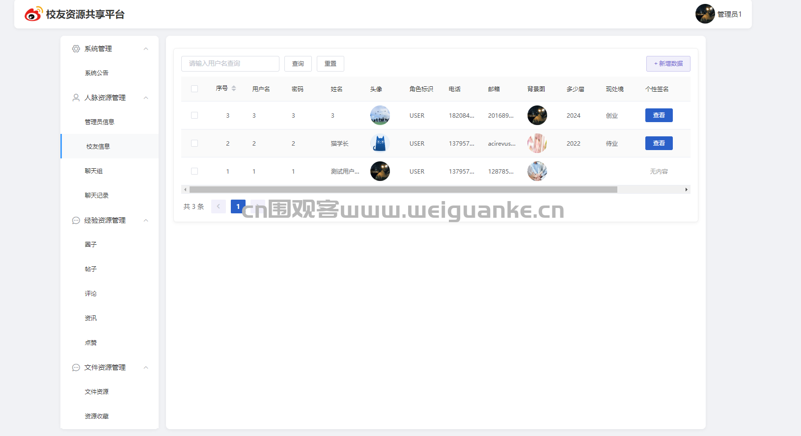 – 功能描述:管理员可以管理校友信息,包括更新校友资料、删除过时信息等。