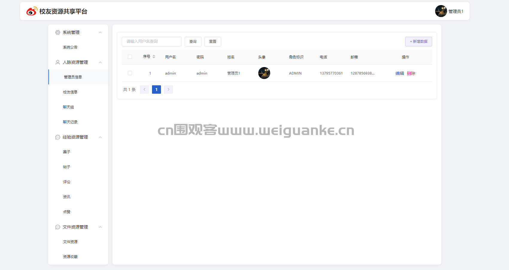 – 功能描述:管理员可以查看和管理管理员账户信息,包括添加新管理员、编辑现有管理员信息、删除管理员账户等。
