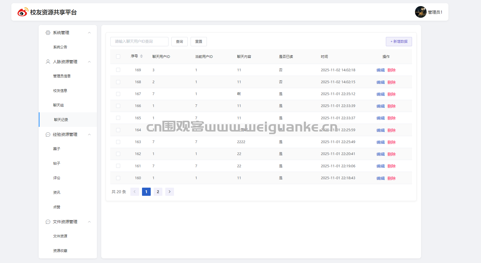 – 功能描述:管理员可以查看和管理系统聊天记录,确保交流内容的合规性和安全性。