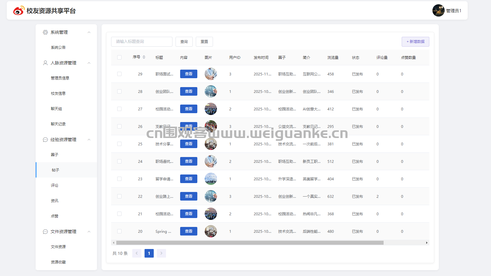 – 功能描述:管理员可以管理用户发布的帖子,包括审核新帖子、编辑帖子内容、删除违规帖子等。