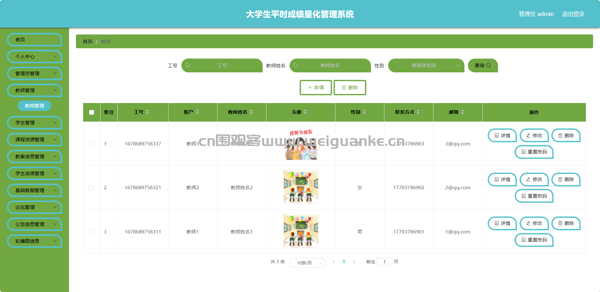 教师管理:维护教师基本信息、任教科目及教学安排等数据。