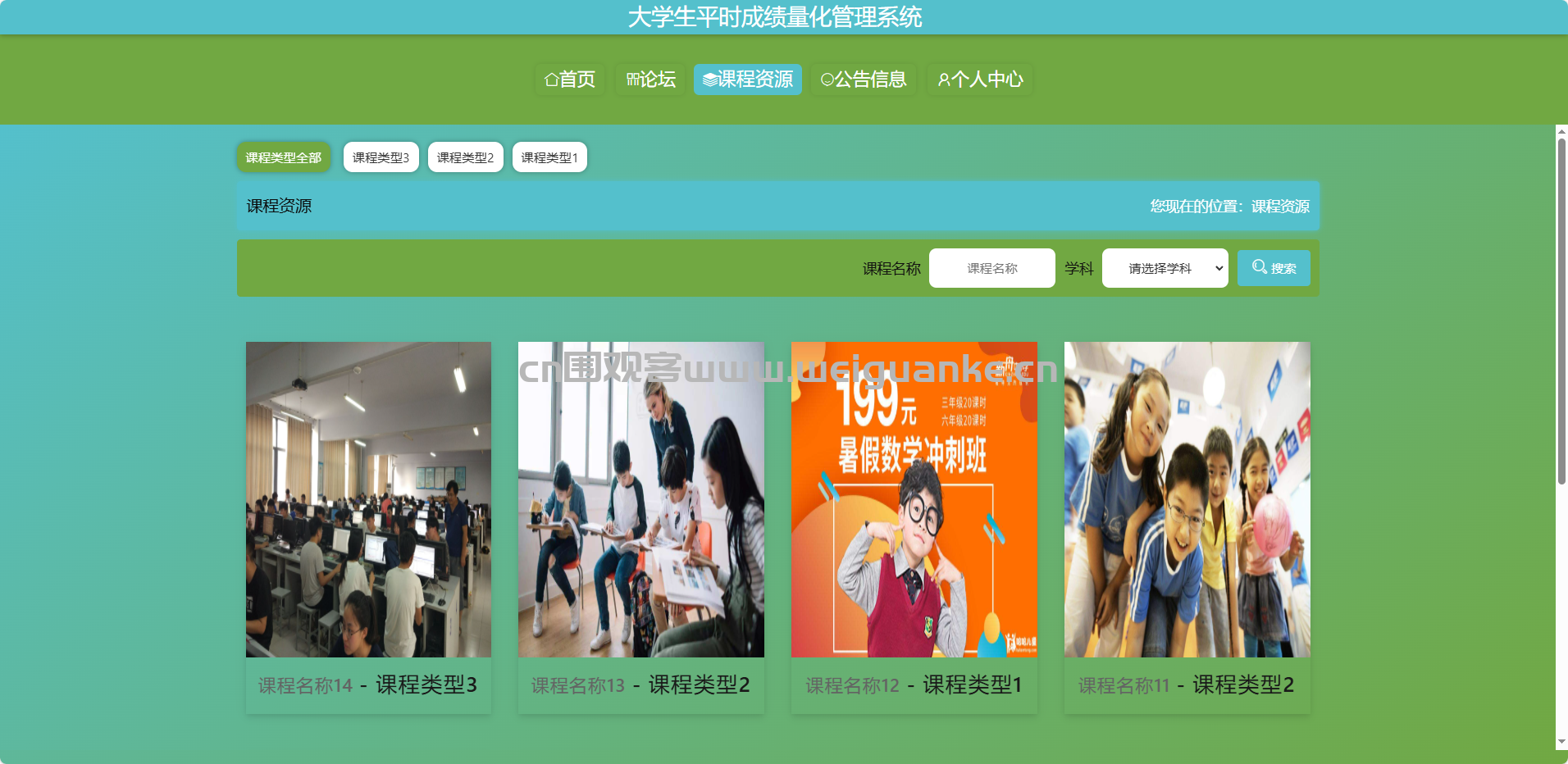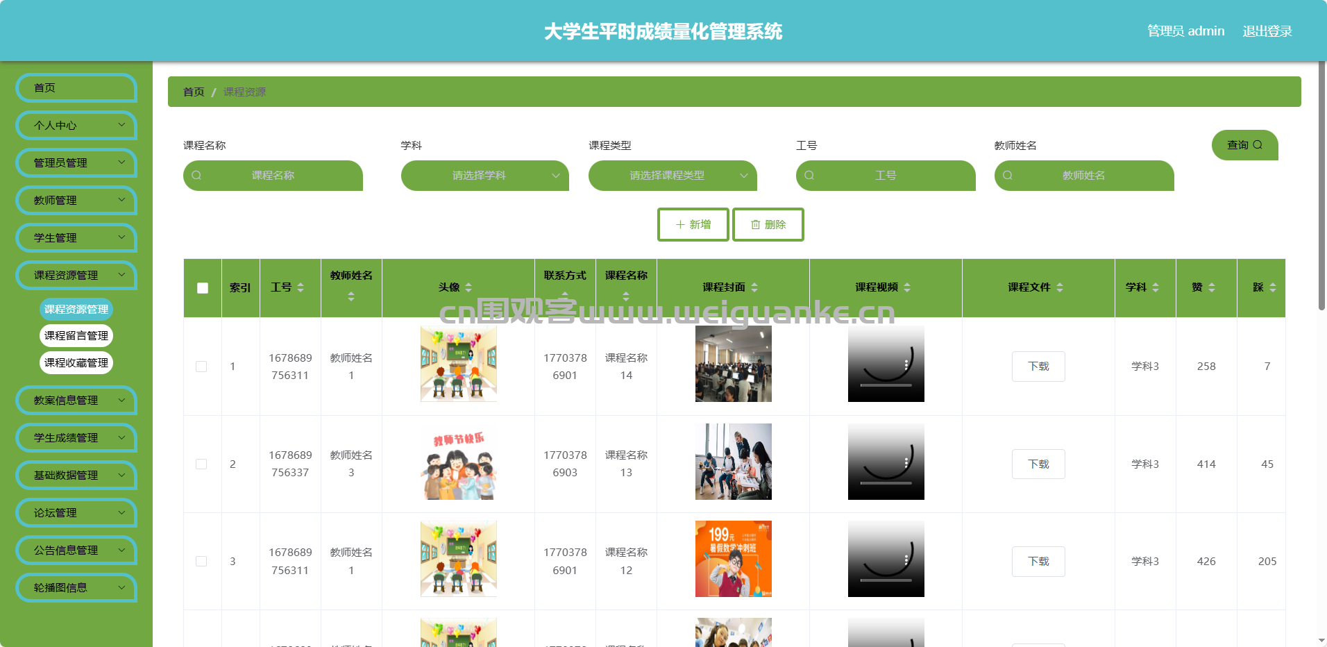 课程资源管理:对教学课件、视频、习题等课程相关资源进行上传、分类与审核管理。