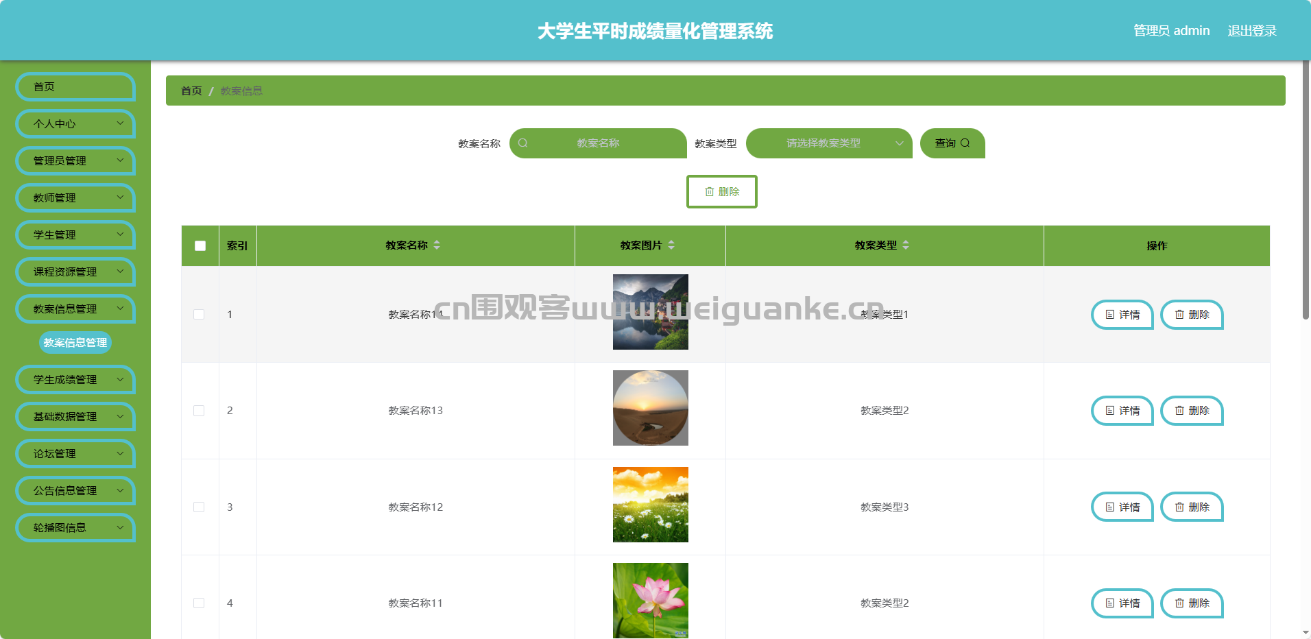 教案信息管理:教师提交、编辑教案,管理员审核与归档教学设计方案。
