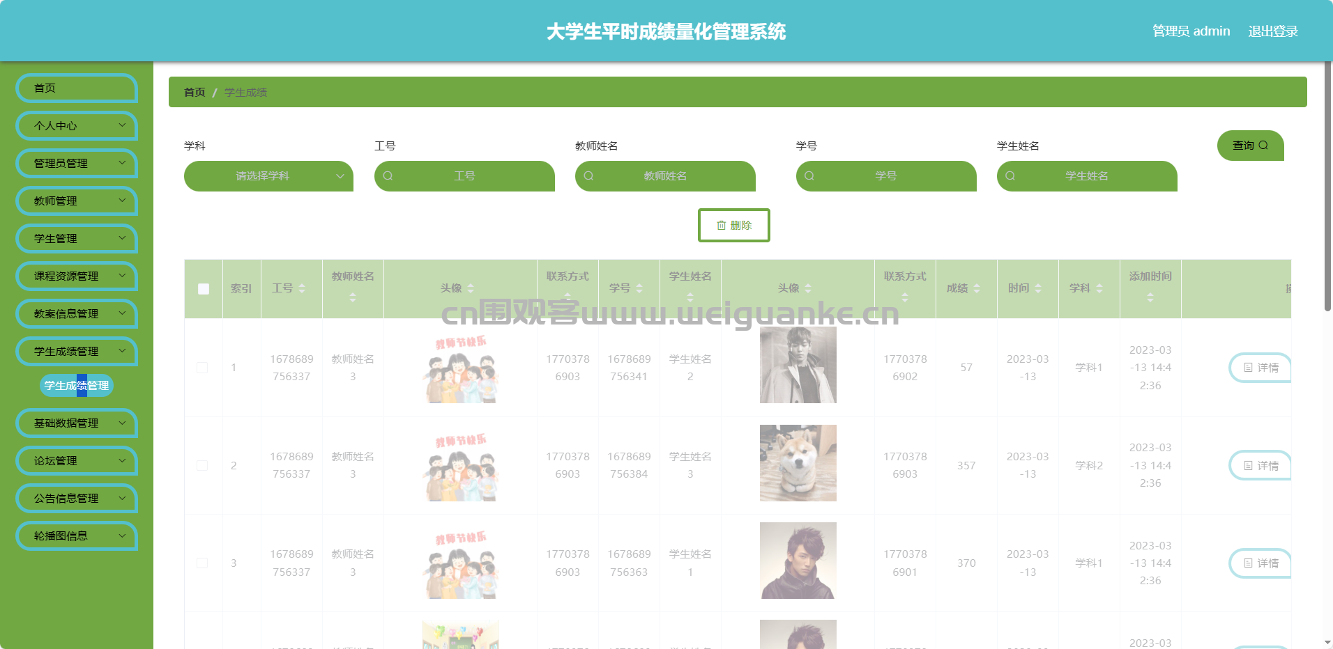 学生成绩管理:录入、查询、统计与分析学生各科考试及平时成绩。
