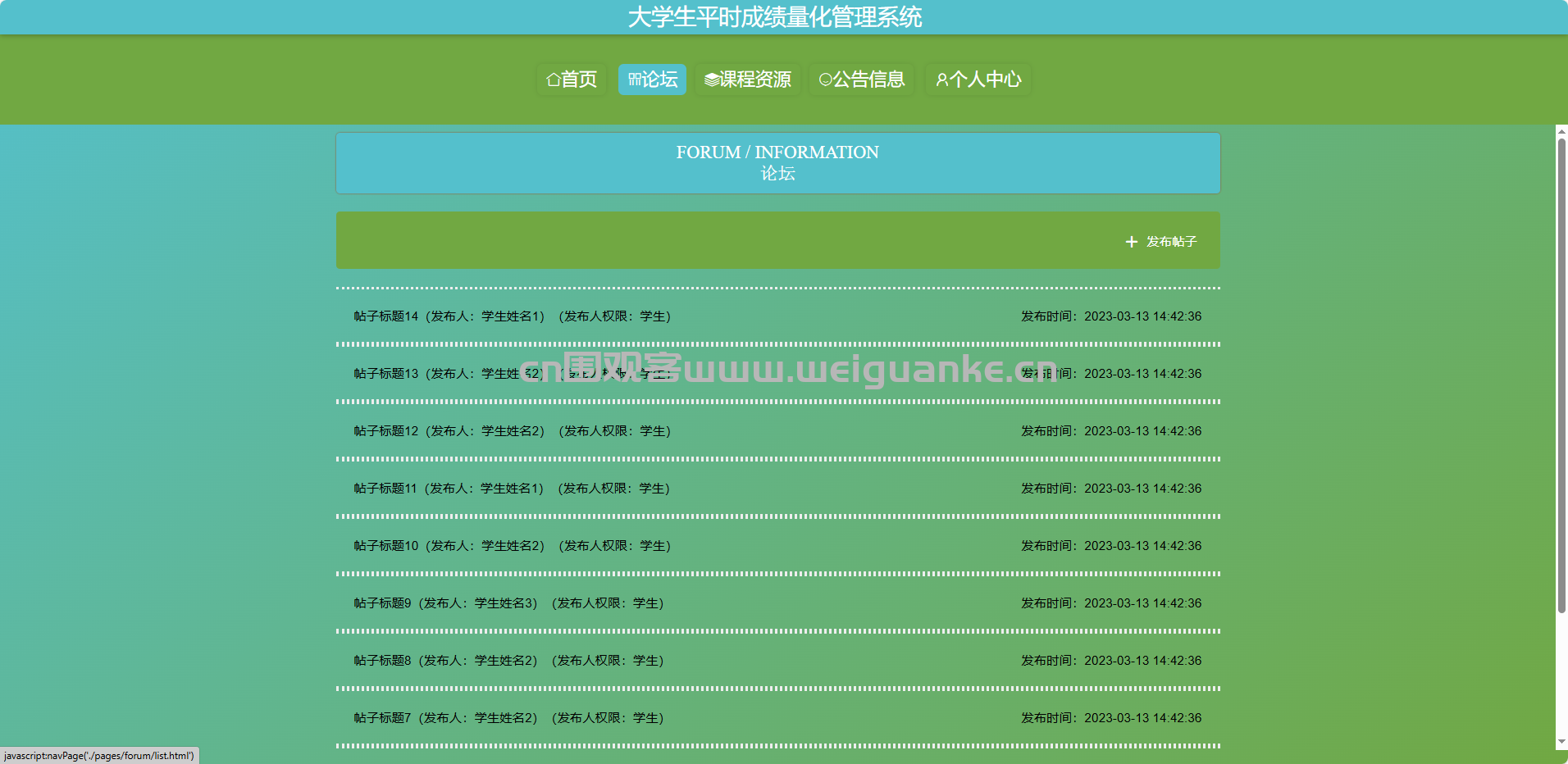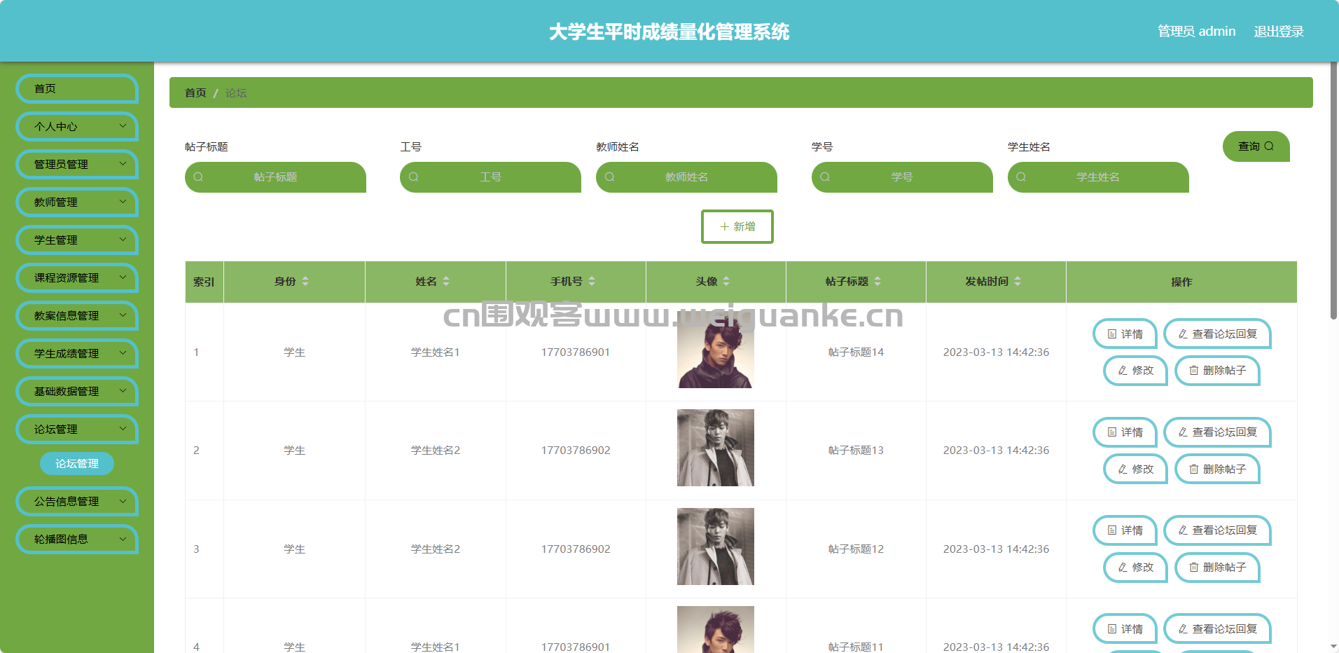 论坛管理:监管用户在教学论坛中的发帖、评论及互动内容,保障交流秩序。