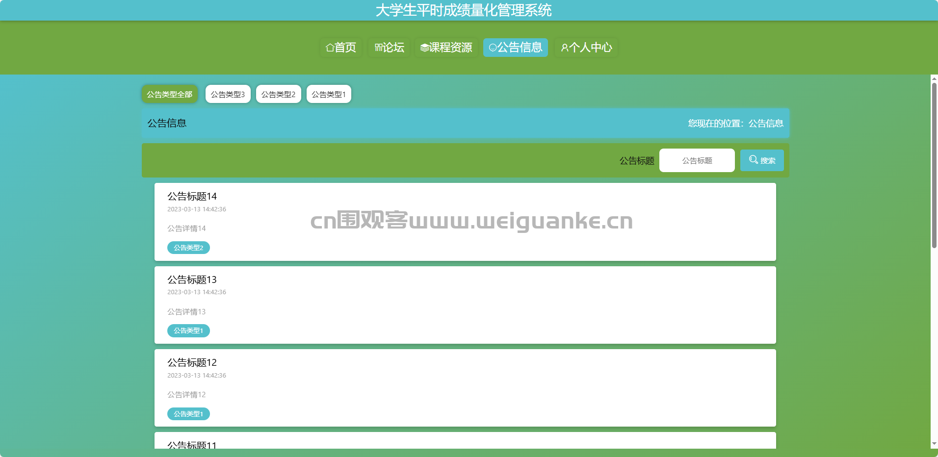 公告信息:发布和查看学校或系统官方通知、活动安排及重要提醒。