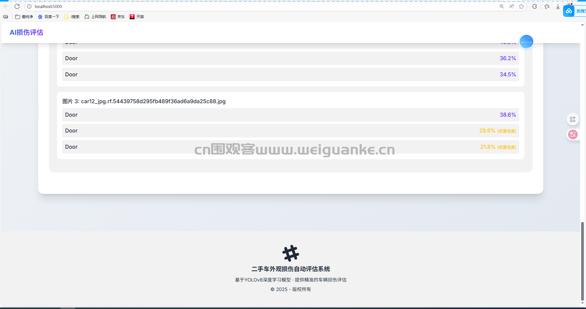 zhe, zhuo python 6天前 基于yolov8的二手车损伤检测系统 项目描述 基于yolov8的二手车损伤检测系统 项目功能:上传图片进行损伤检测 运行环境 开发工具:PyCharm 运行环境:python3.8 此配置为本人调试所用,仅供参考 项目技术: 后端:flask yolov8 数据集https://www.kaggle.com/datasets/tatakb/damaged-car-dataset-yolov8 以上系统源码经过技术整理与调试,确保能正常运行