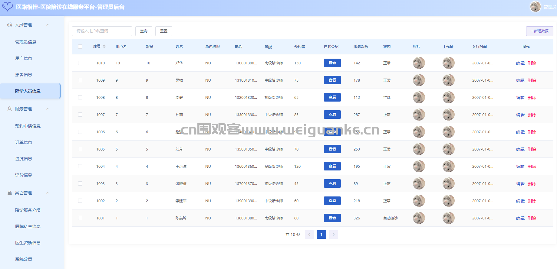 医路相伴-医院陪诊在线服务平台系统通过MySQL数据库和Java web进行开发