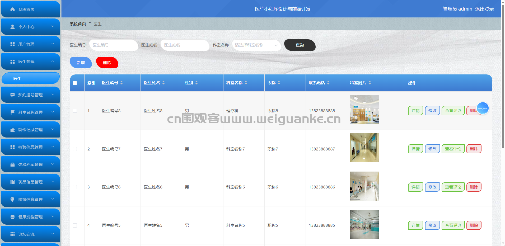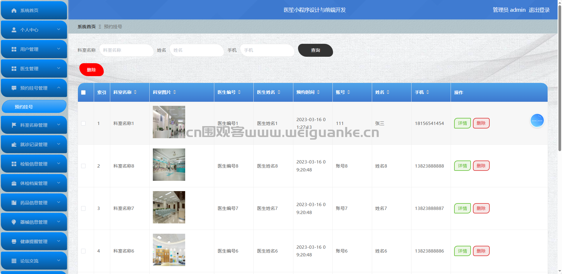 科室名称管理:动态设置医院科室,支持增删改查与排序。