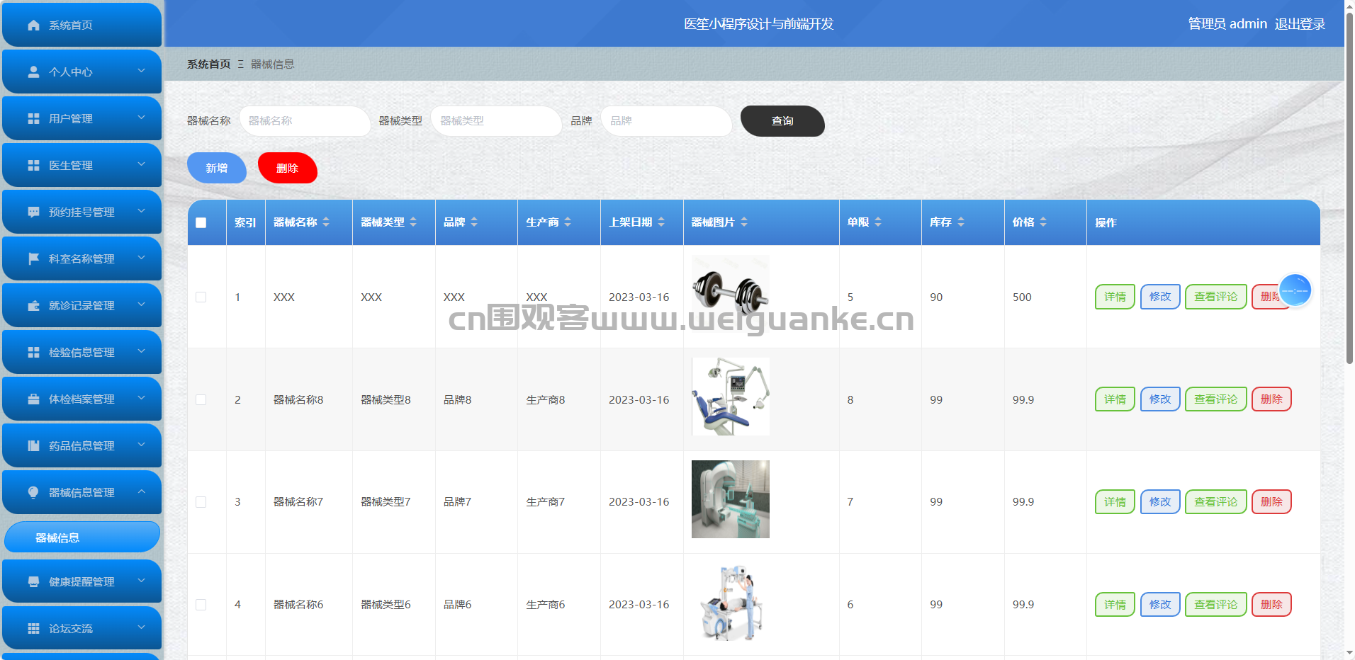 器械信息管理:管理医疗设备信息,记录使用状态与维护周期。