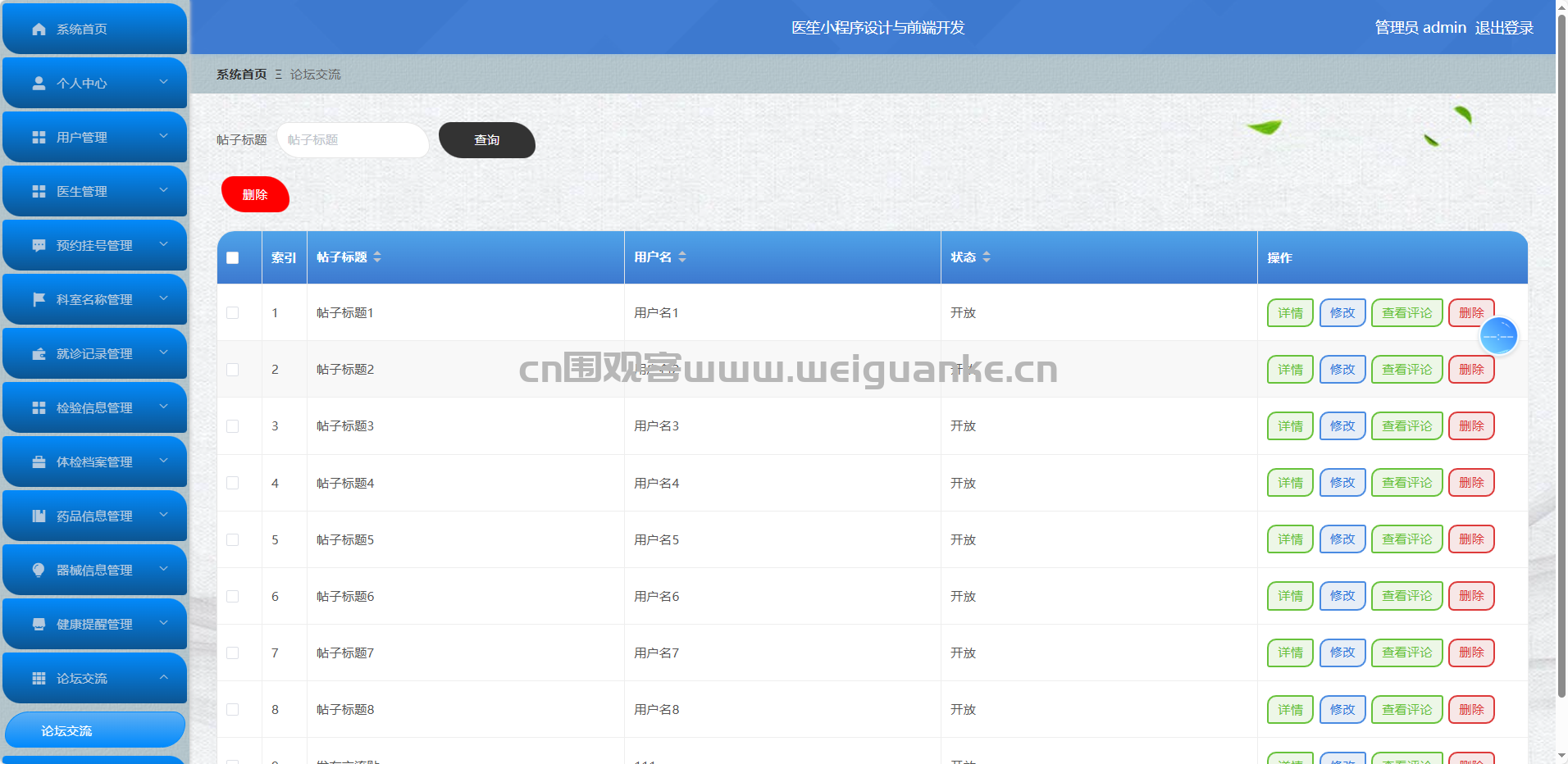 论坛交流:监管社区帖子与评论,支持置顶、加精、删除。