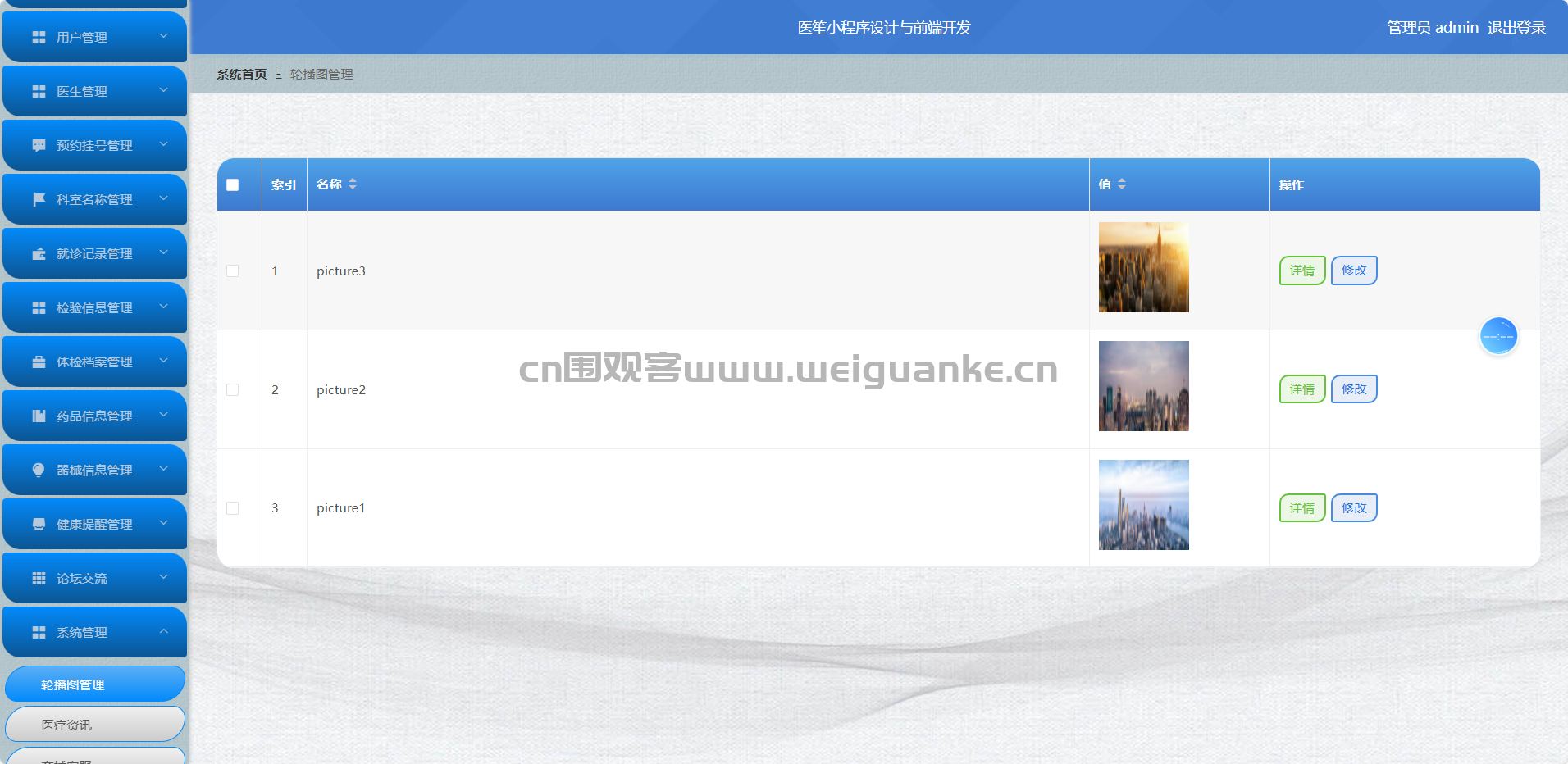 就诊记录管理:后台查看与编辑所有患者的就诊履历。