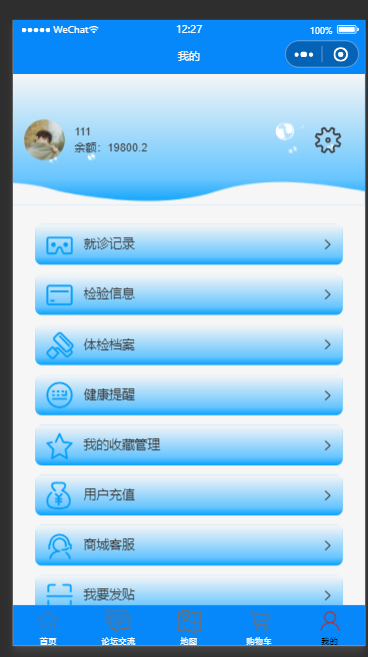 用户充值:在线秒充余额,挂号购药咨询付费全搞定。