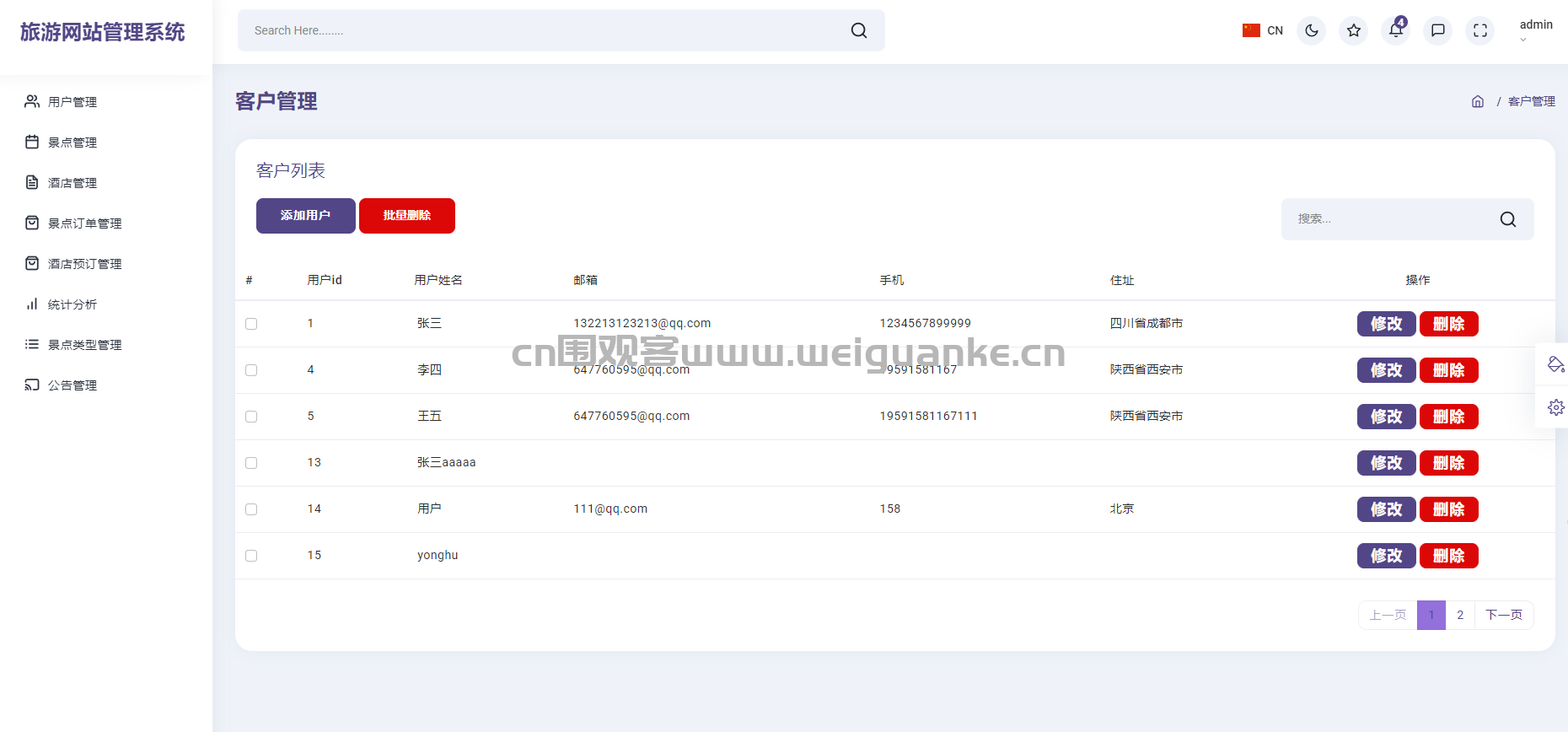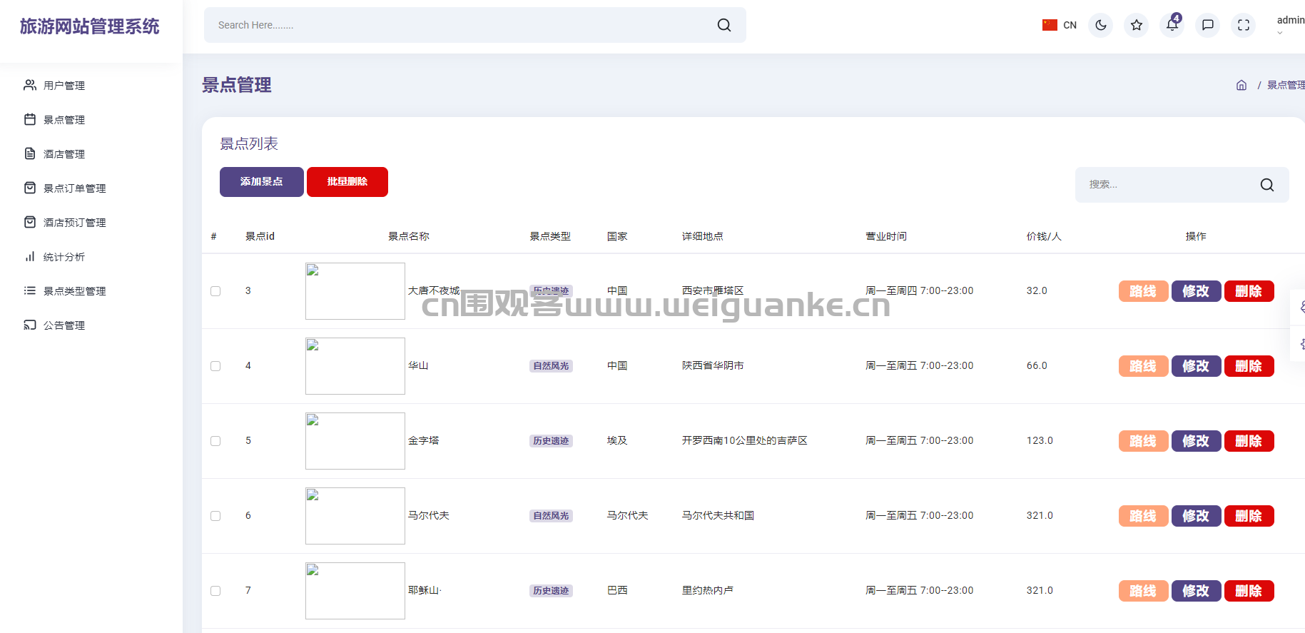 – 功能描述:管理员可以管理景点信息,包括添加、删除、修改景点。