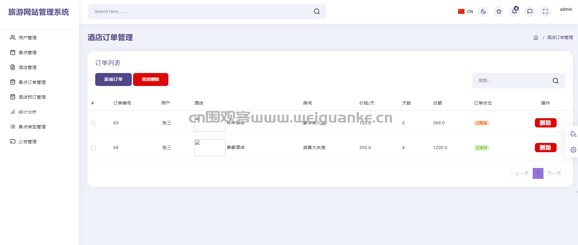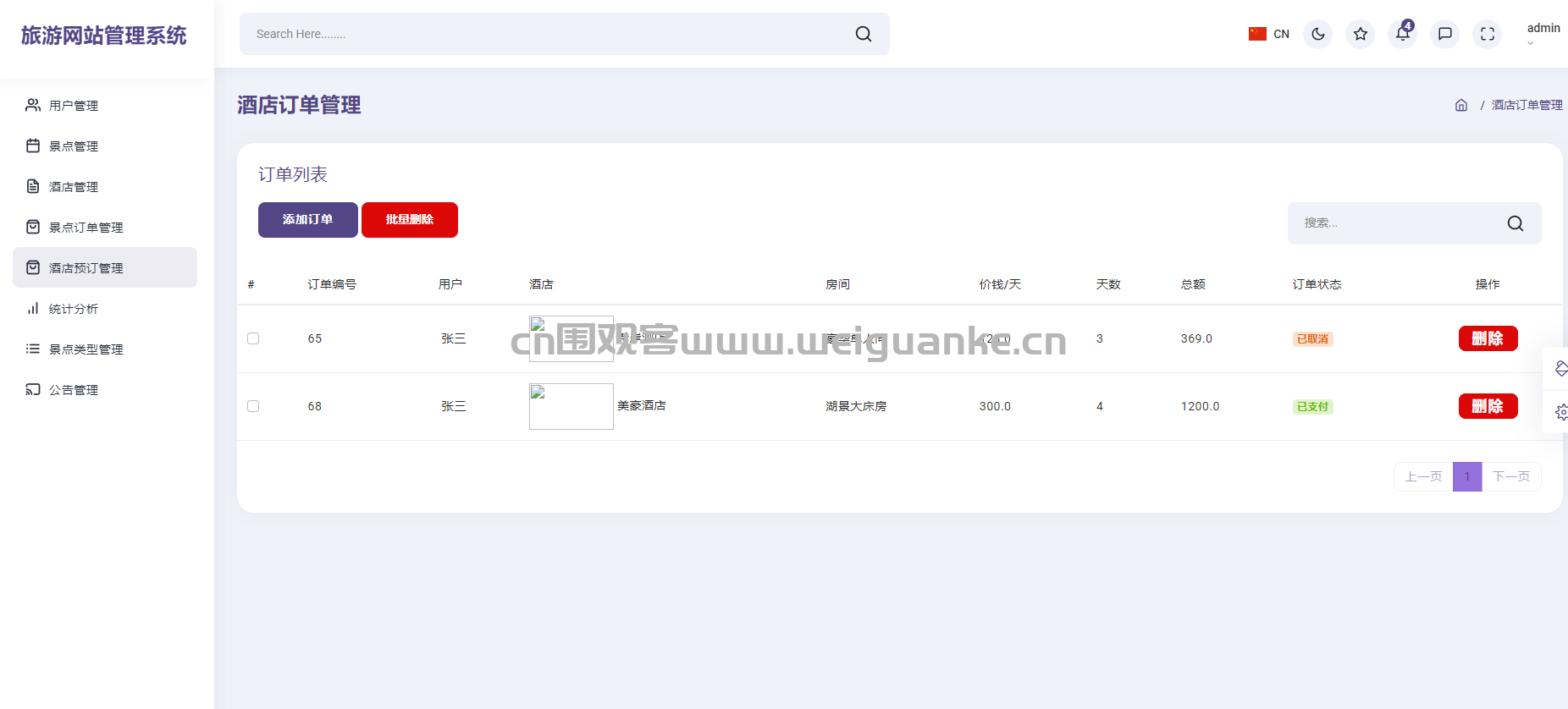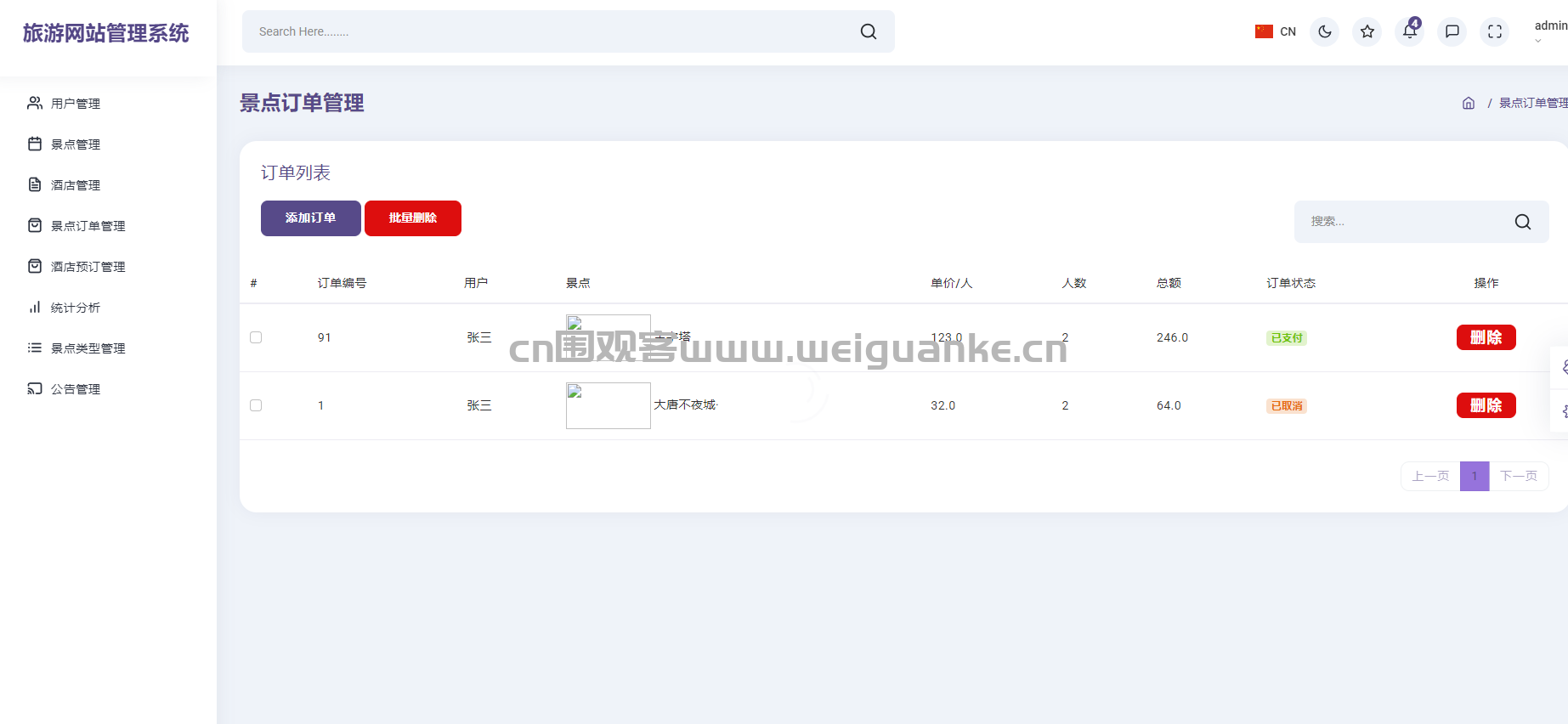– 功能描述:管理员可以查看和管理所有景点订单。