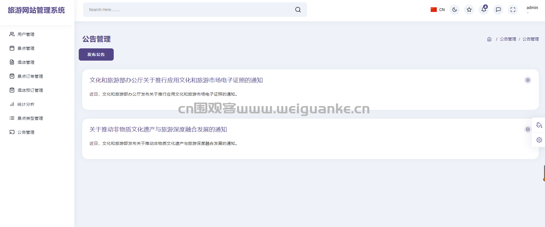 – 功能描述:管理员可以发布、编辑和删除系统公告。