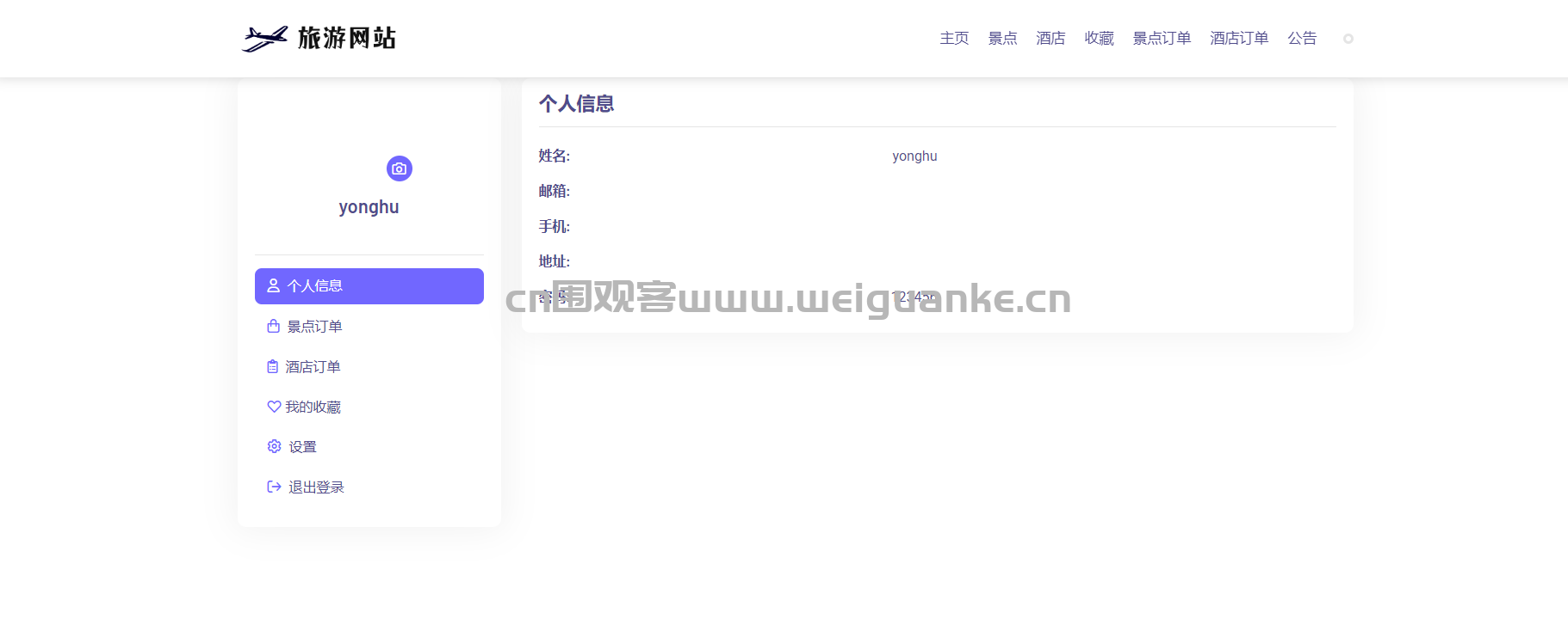 – 功能描述:用户可以查看和管理自己的景点订单。