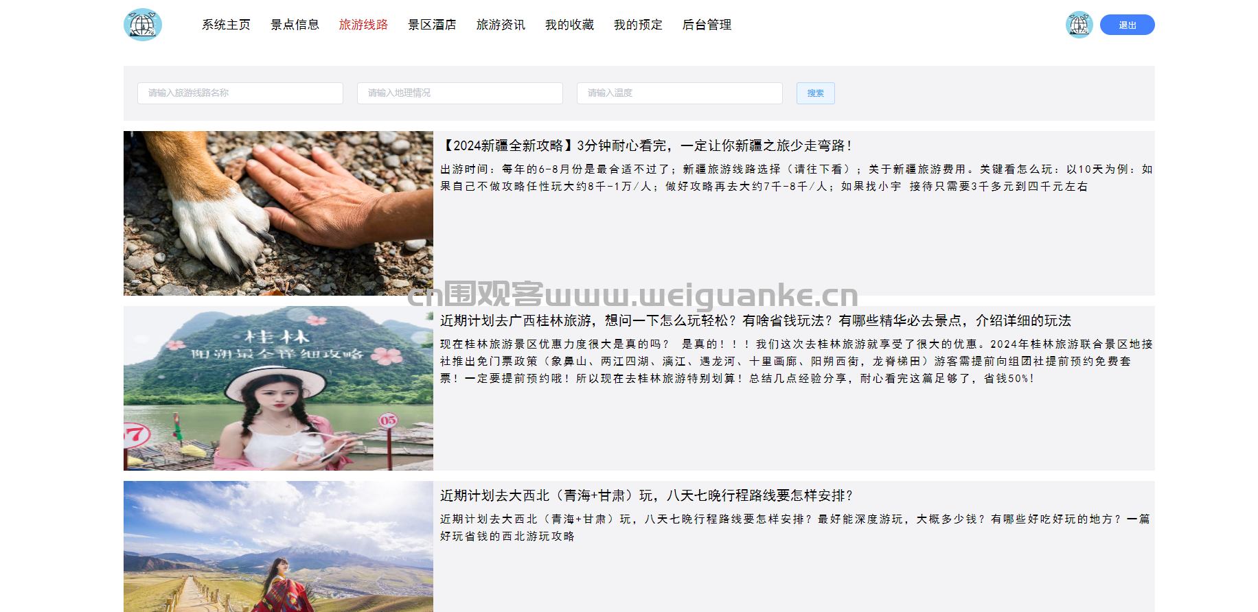 旅游推荐管理系统通过MySQL数据库和Java web进行开发