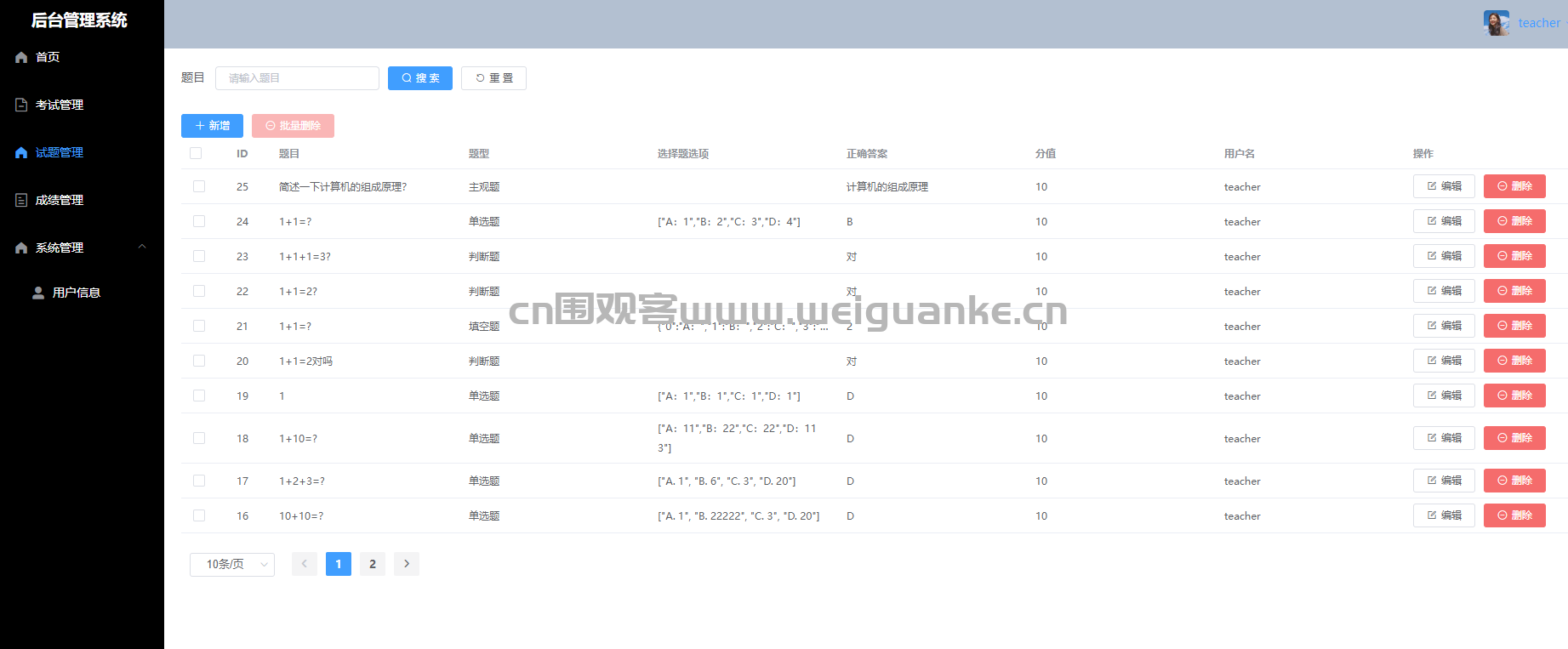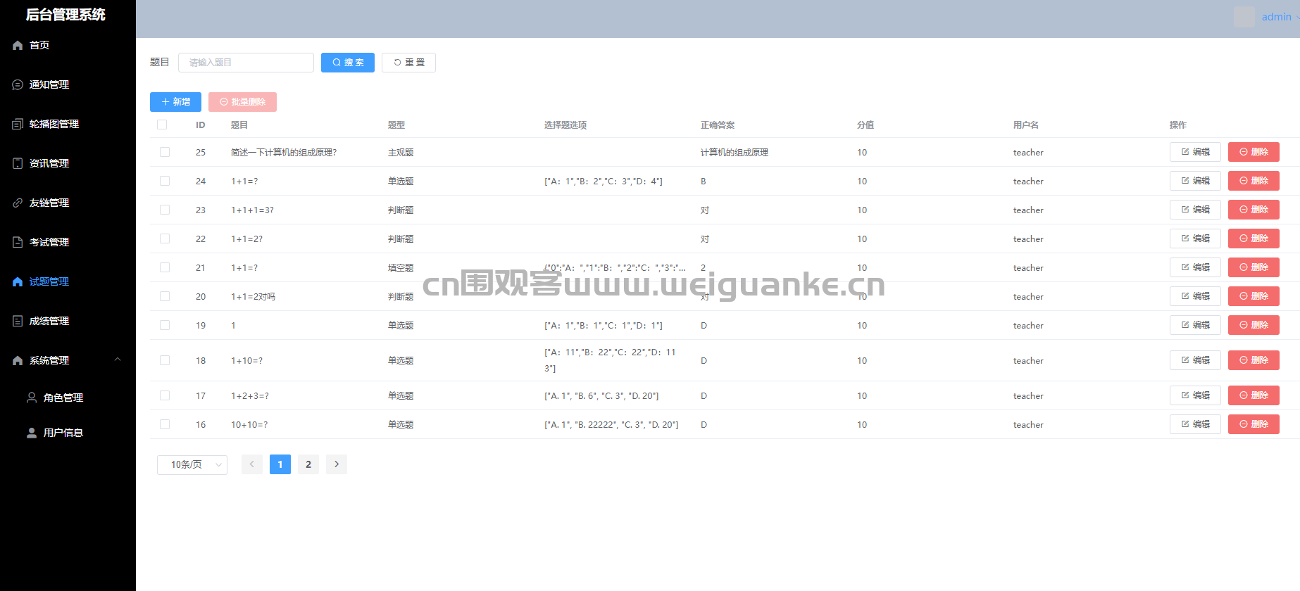 – 试题管理:设计、编辑、删除试题,丰富题库资源。