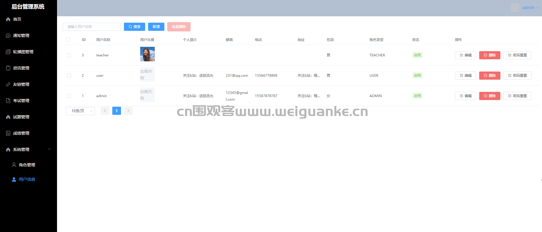 – 角色管理:创建、编辑、删除用户角色,分配权限。