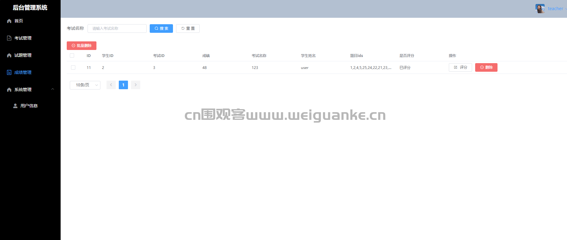 教师主要负责考试相关的内容管理及成绩管理,同时参与系统维护。具体功能如下: