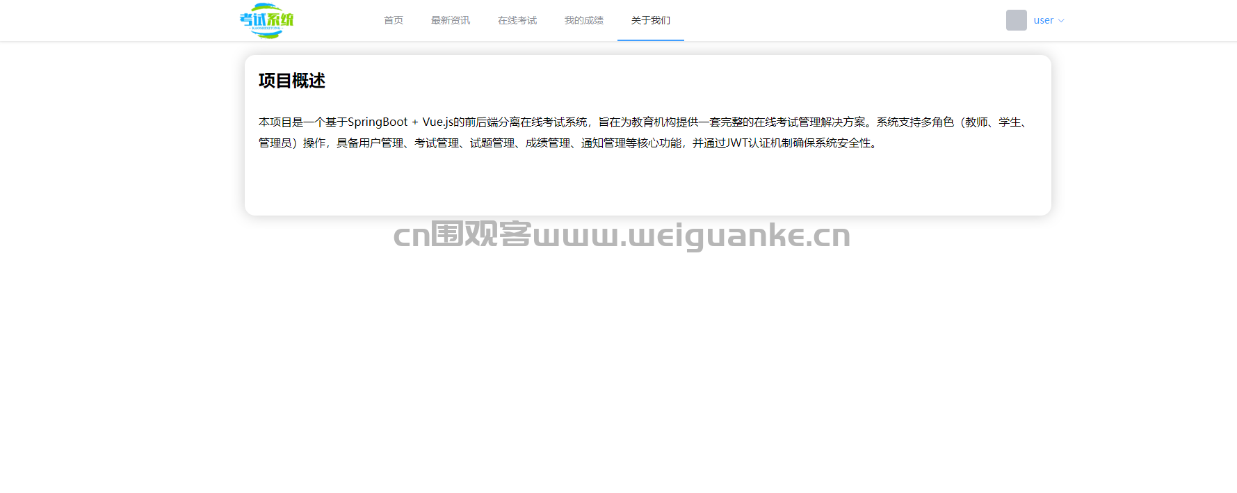 用户主要通过系统获取资讯、参加考试及查看成绩。具体功能如下: