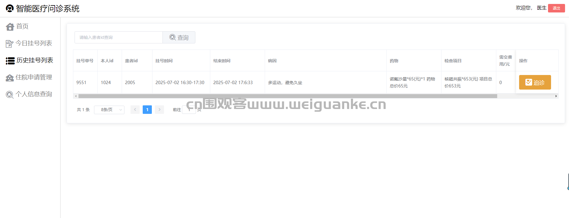 医生可以查看历史挂号记录,包括患者的详细信息、历史诊断结果、治疗方案等。支持按时间、患者姓名等条件进行筛选,方便医生快速查找特定患者的记录。