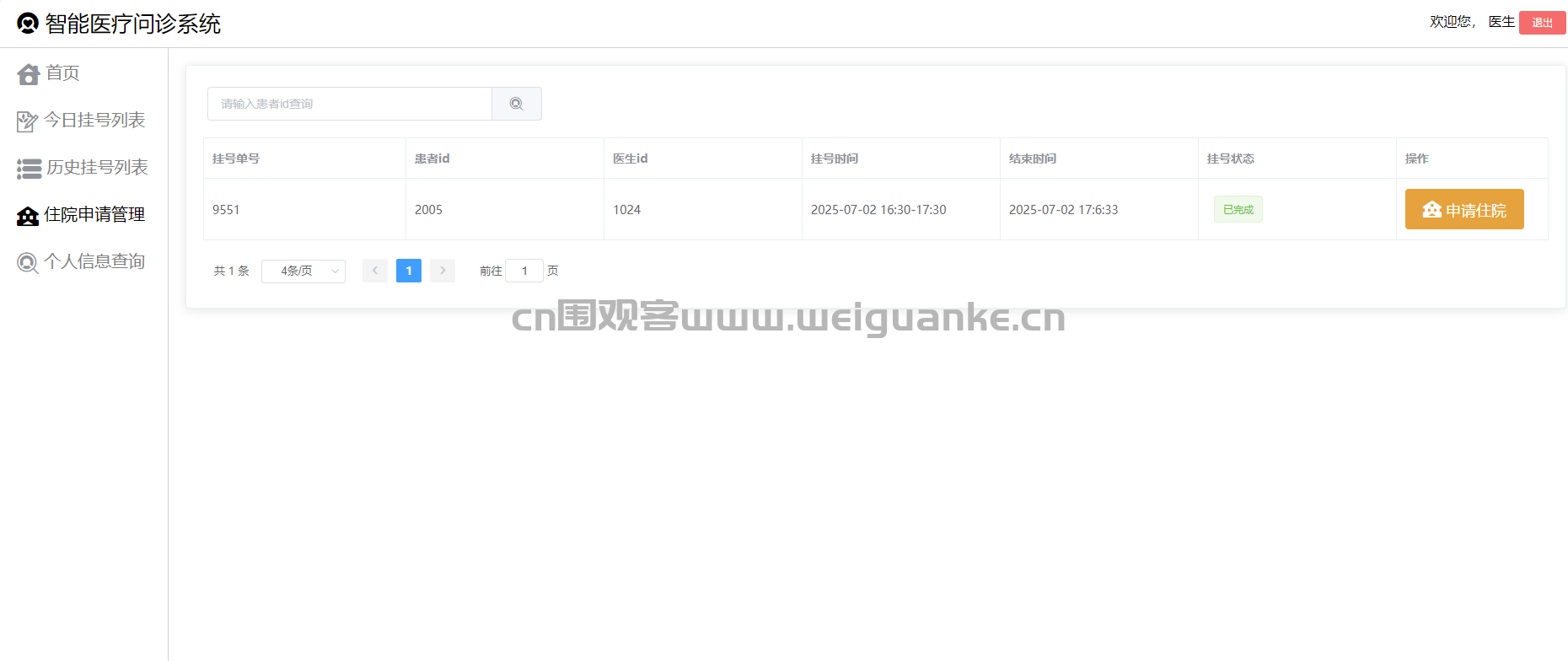 4. 住院申请管理