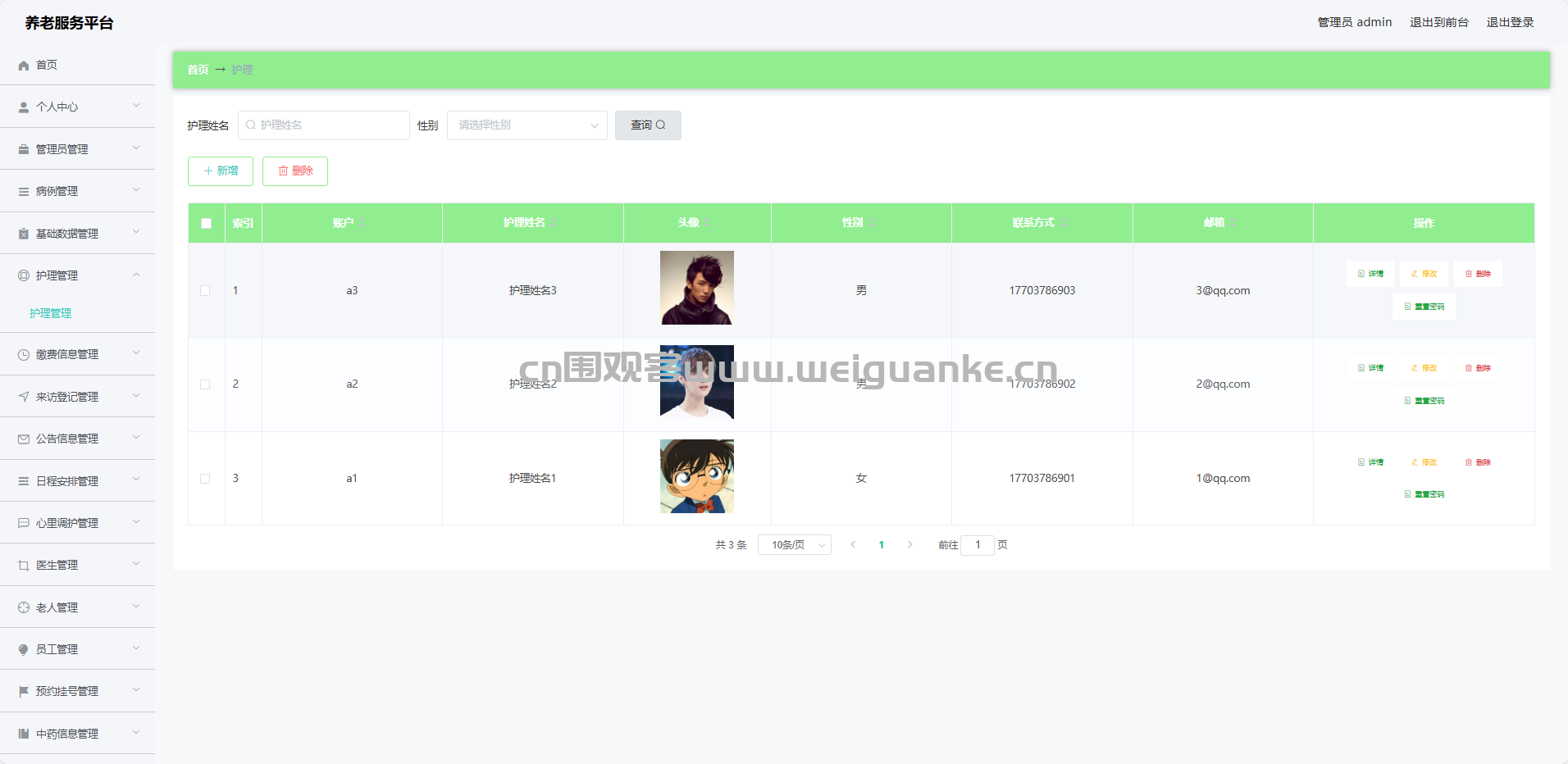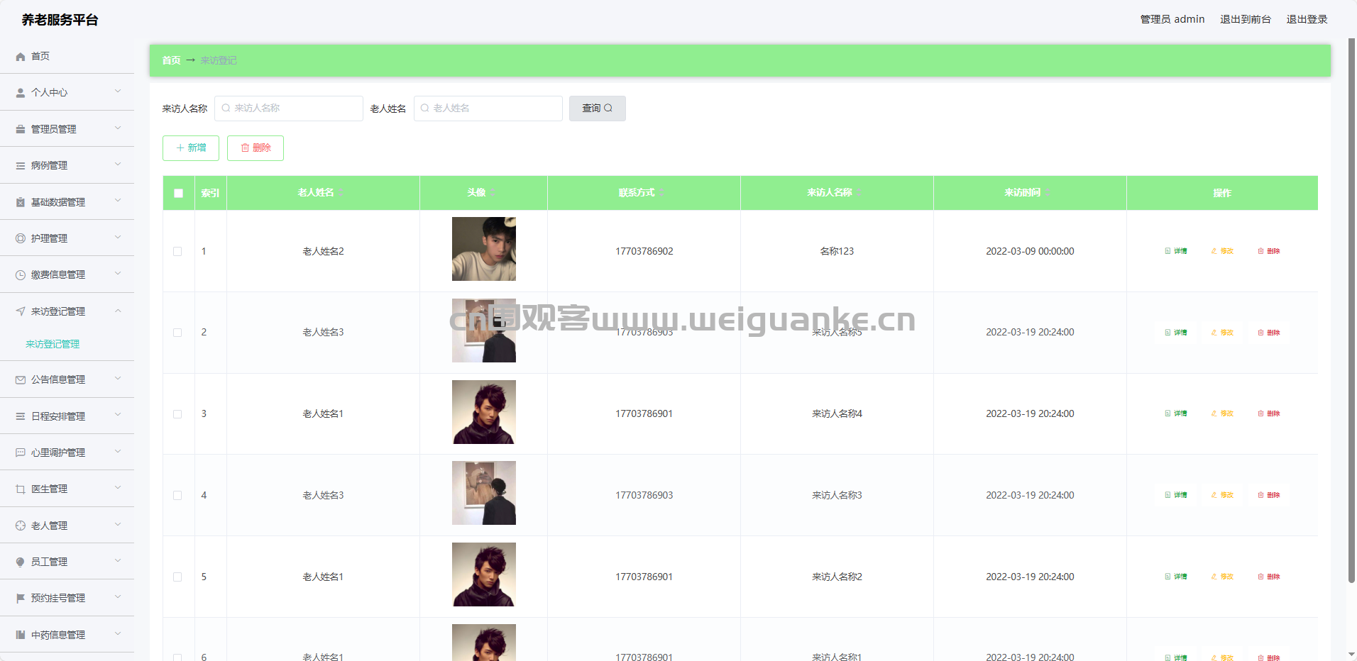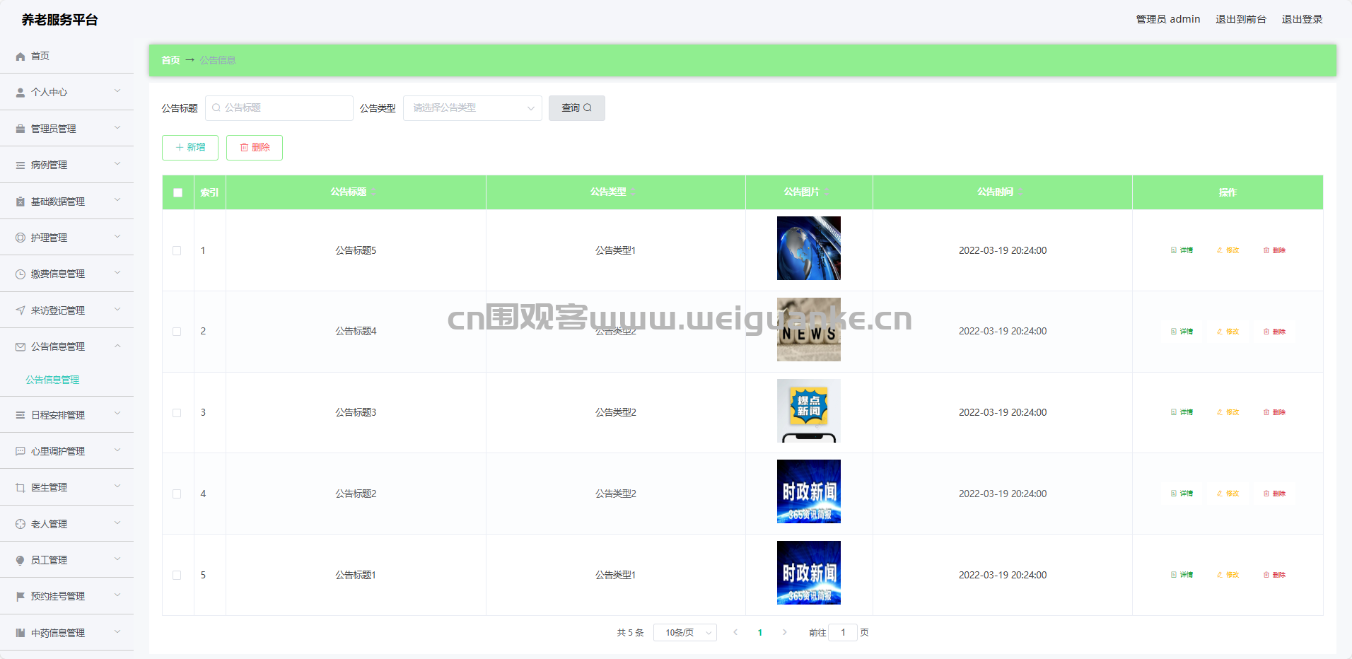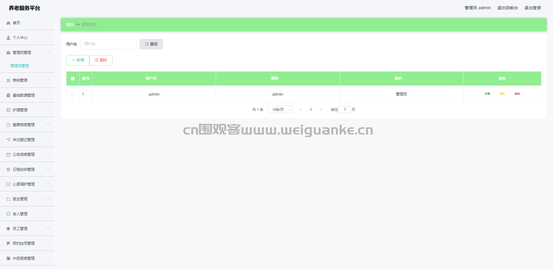 后台管理:内容、老人、数据一站式管控,运营安全又高效。