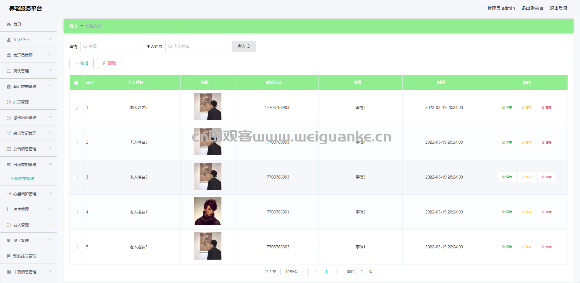 日程安排管理:医生排班、护理轮班、老人活动日历可视化冲突检测。