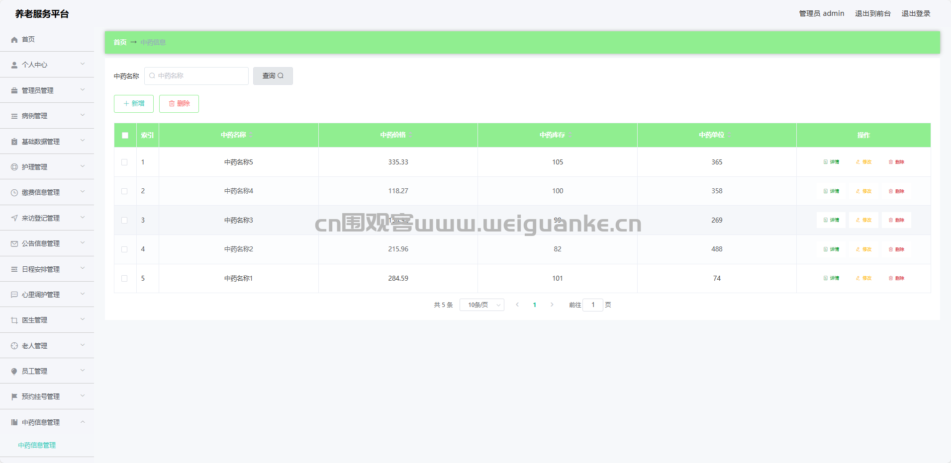 中药信息管理:药材属性、配伍禁忌、价格库存动态维护,支持一键查询。