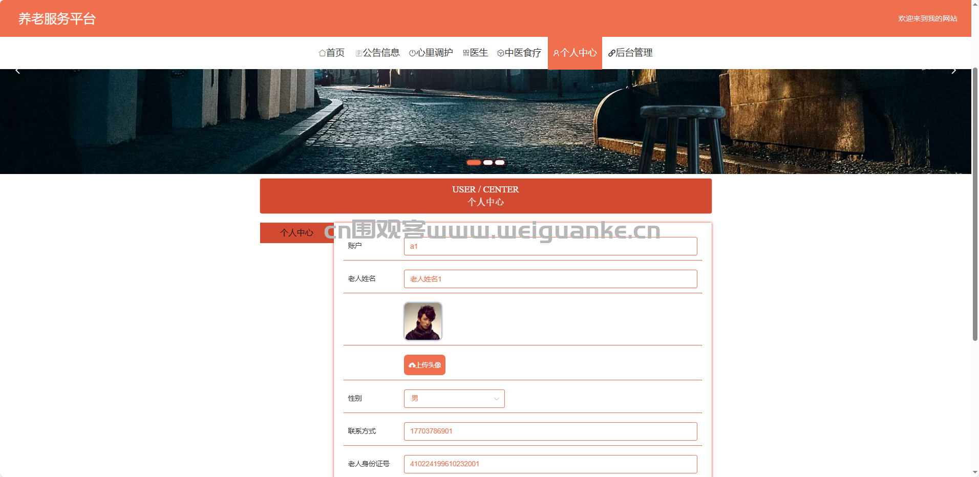个人中心:一账号聚合预约、健康档案与食疗记录,老人及家属随时查阅。