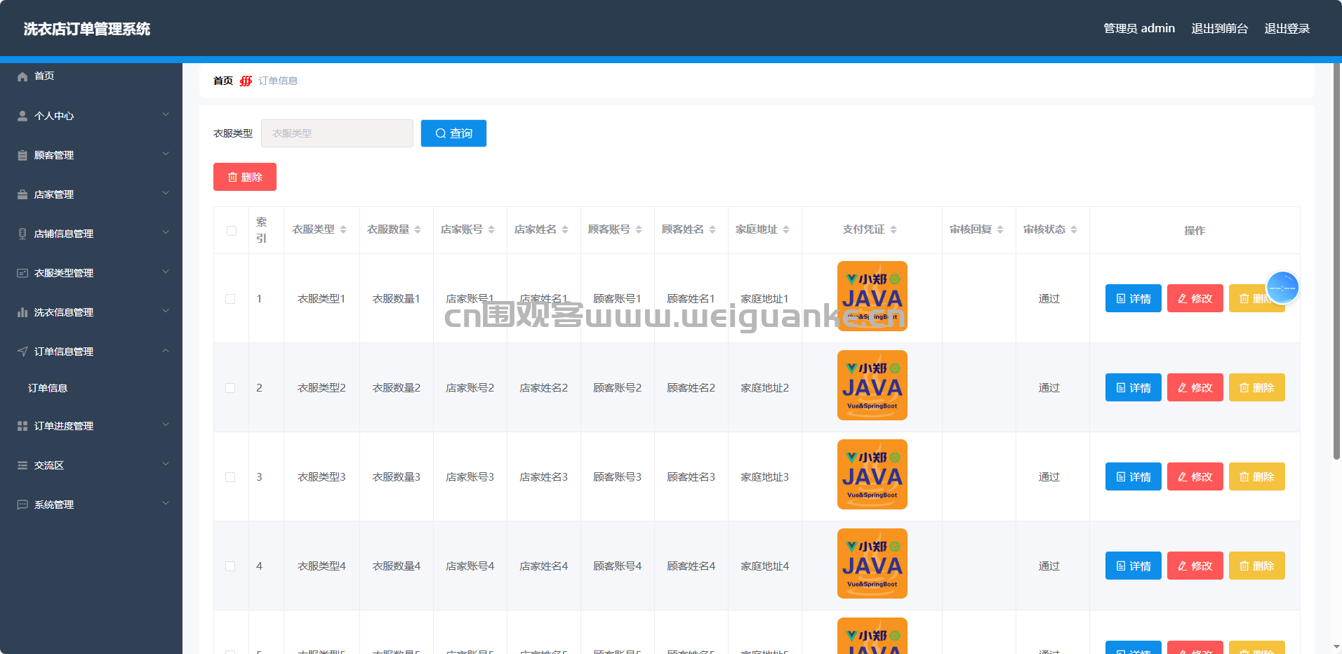 基于springboot+vue的洗衣店订单管理系统通过MySQL数据库连接数据库