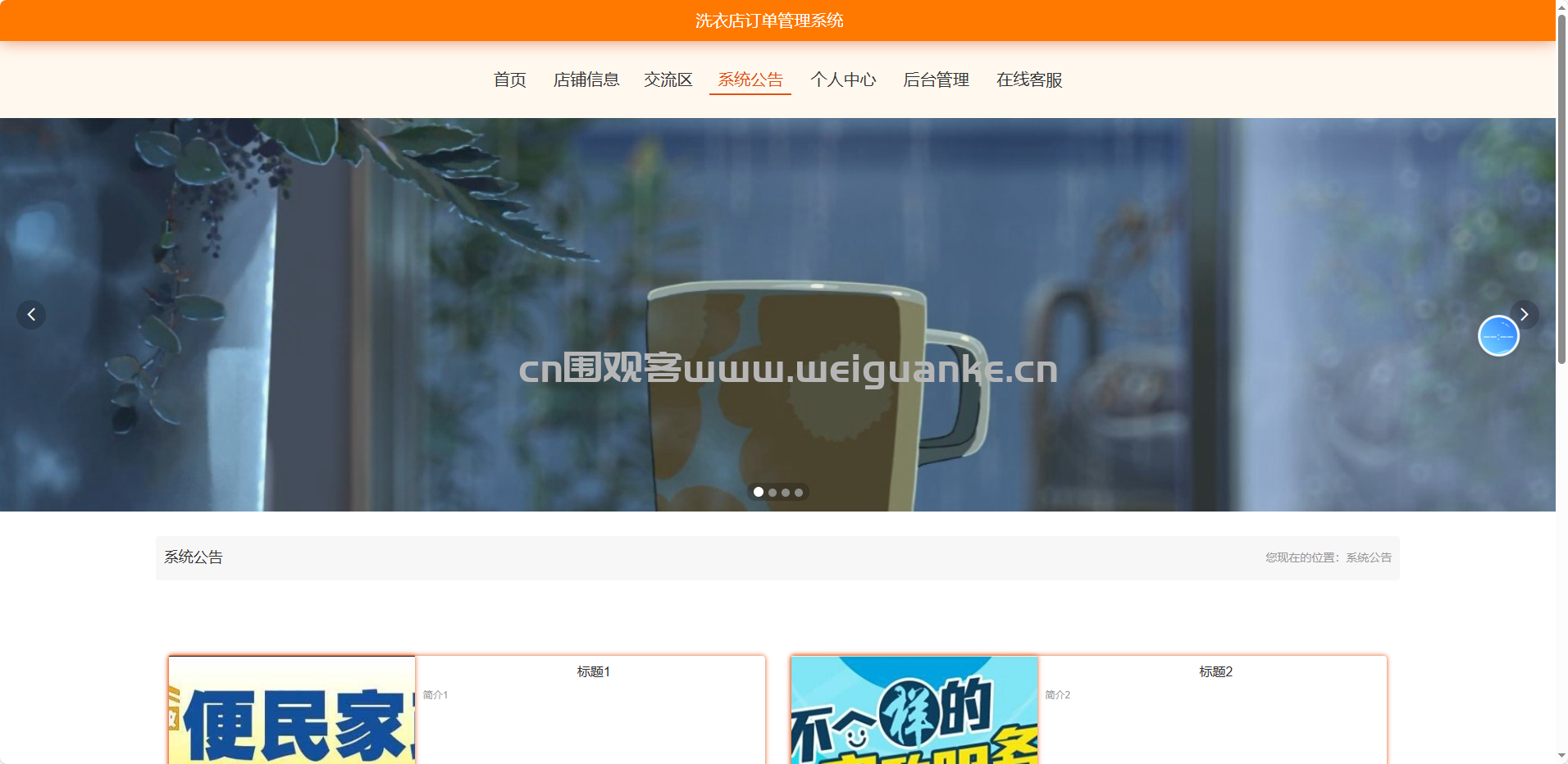 店铺信息管理:门店地址、营业时间、服务范围、实景图片实时更新,前端同步展示。