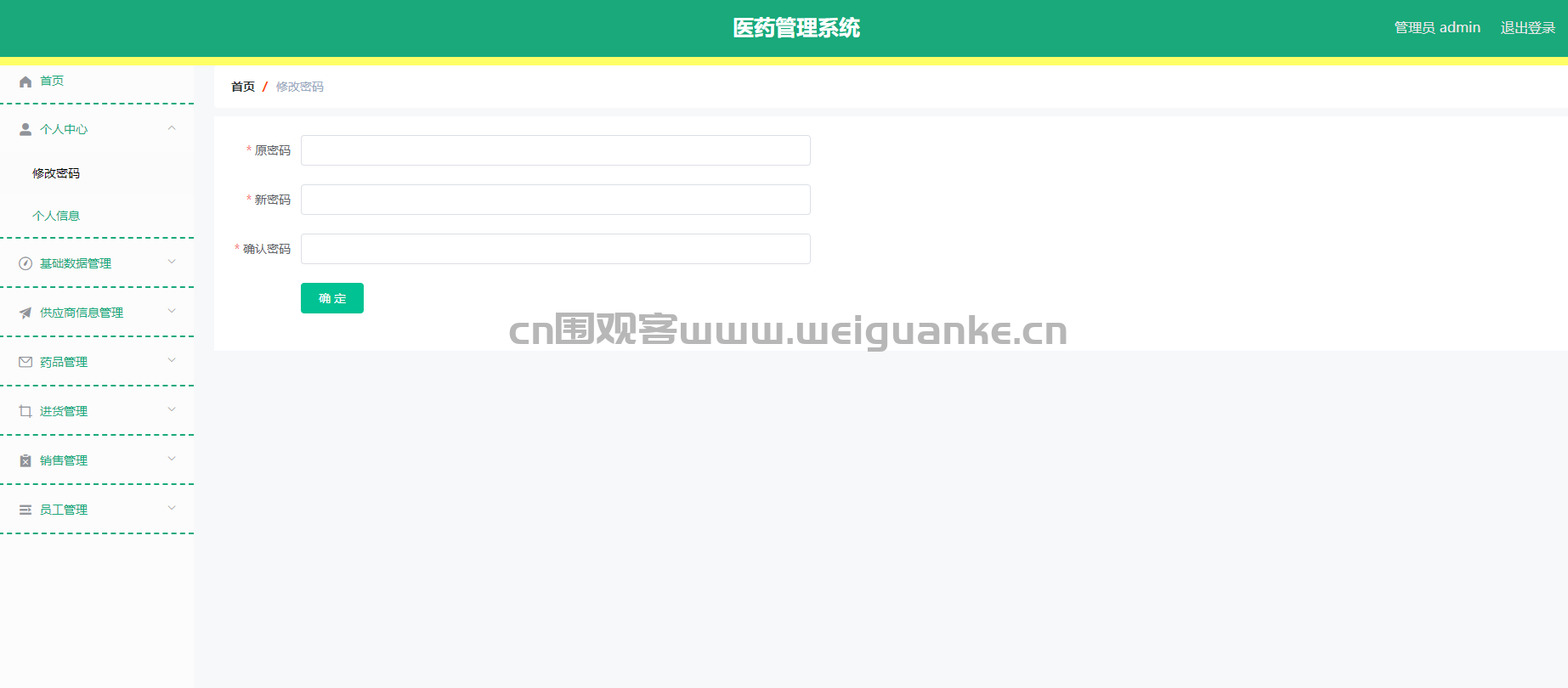 功能描述:允许管理员修改自己的登录密码,确保账户安全。