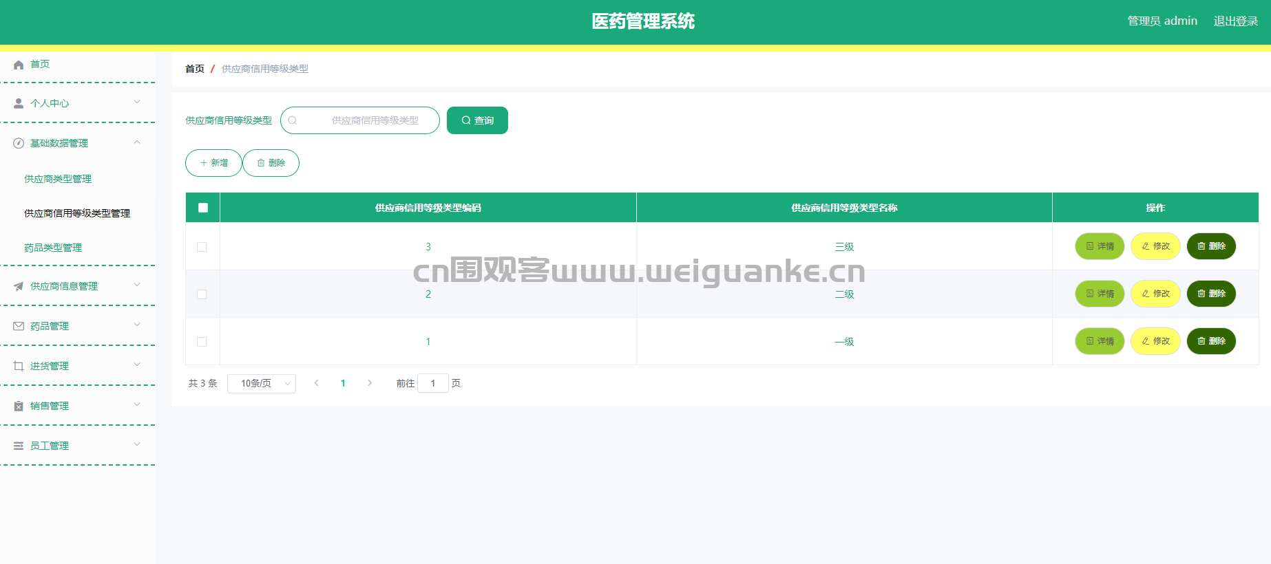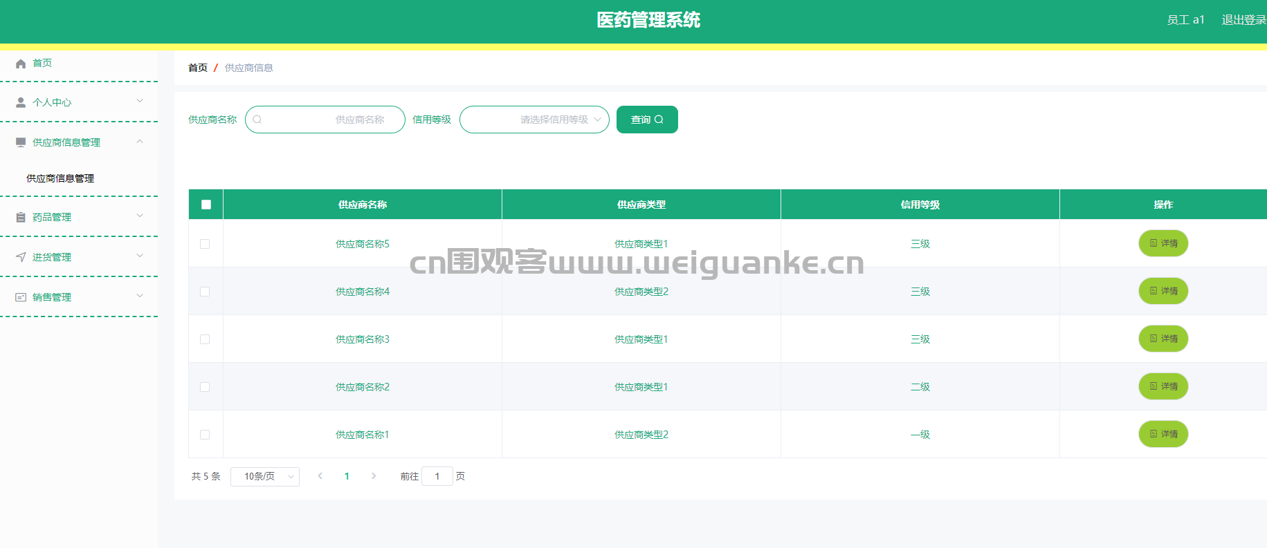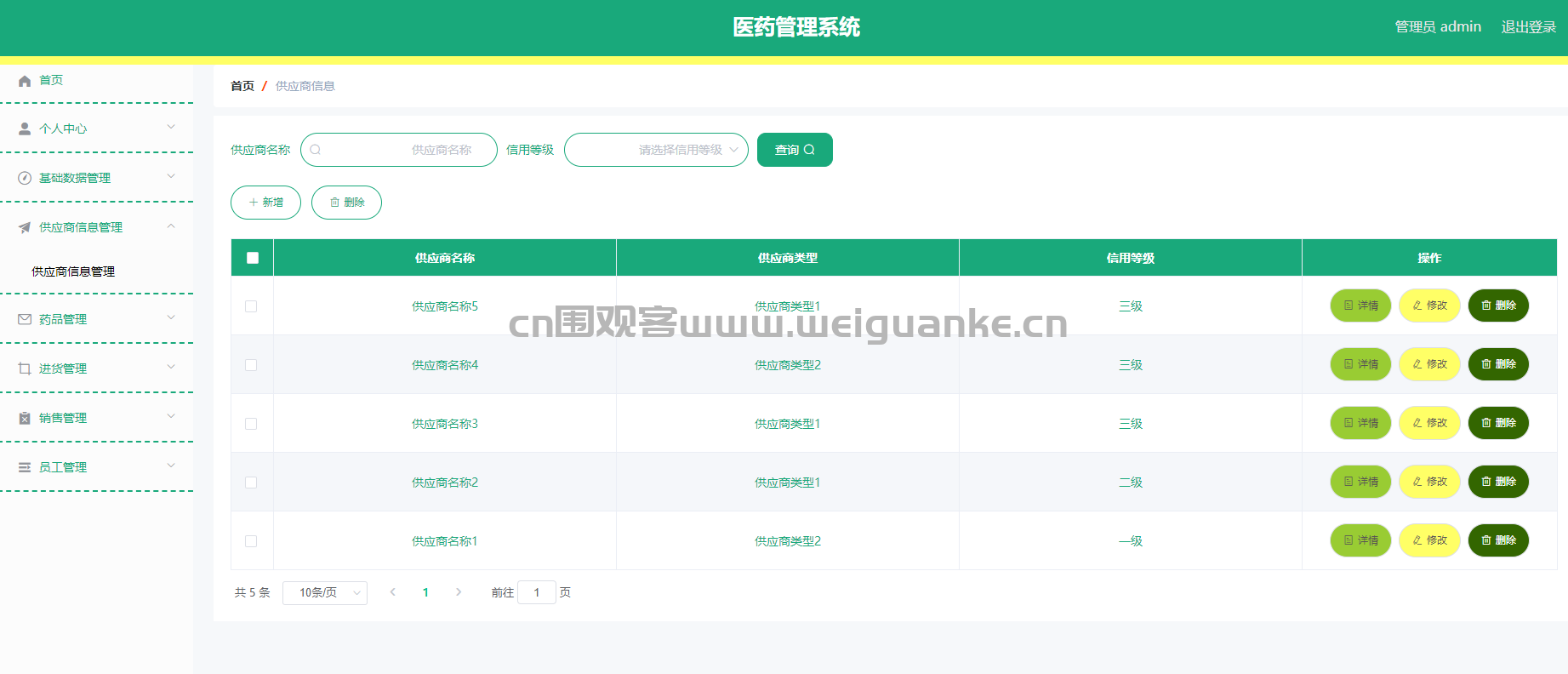 功能描述:全面管理供应商信息,包括供应商的基本信息、联系方式、信用等级等,支持新增、修改、删除和查询供应商信息。
